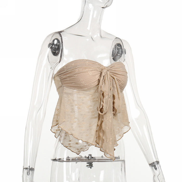 (Real Image)2024 Styles Women Spring Knot Tied Sexy Spicy Lace Halter TopSKU: #XF92885-1