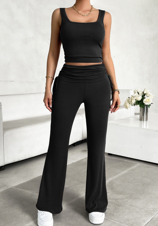 (Real Image)2024 Styles Women Spring/Summer Casual Solid Color Slim Fit Tank Top and Pants Homewear SetSKU: #XF45055-1