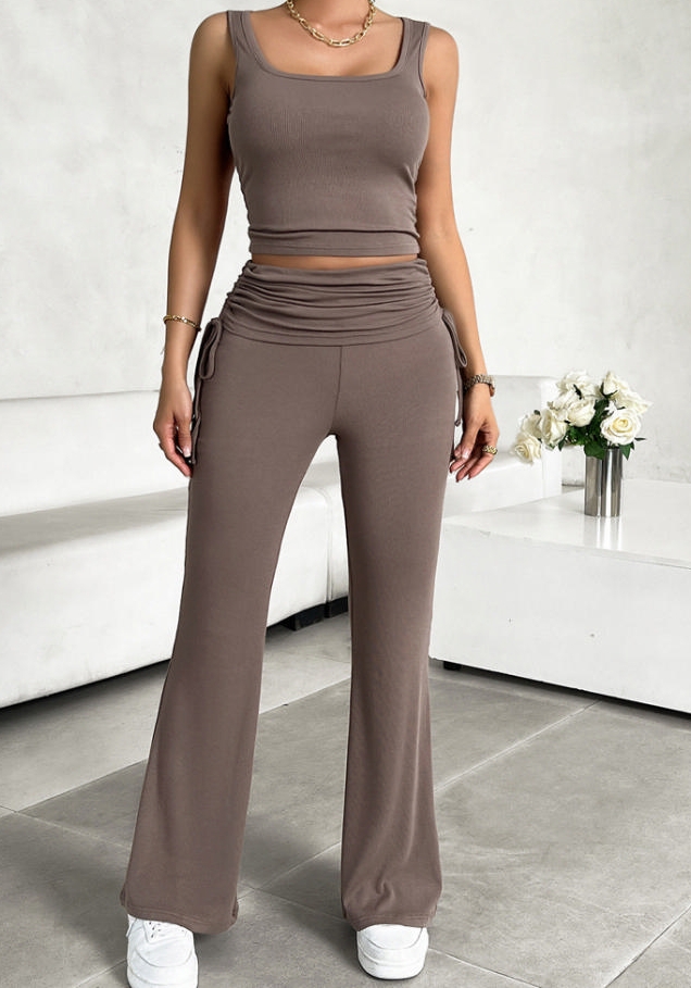 (Real Image)2024 Styles Women Spring/Summer Casual Solid Color Slim Fit Tank Top and Pants Homewear SetSKU: #XF45055-4