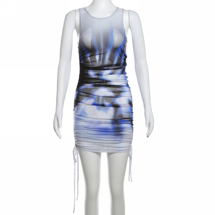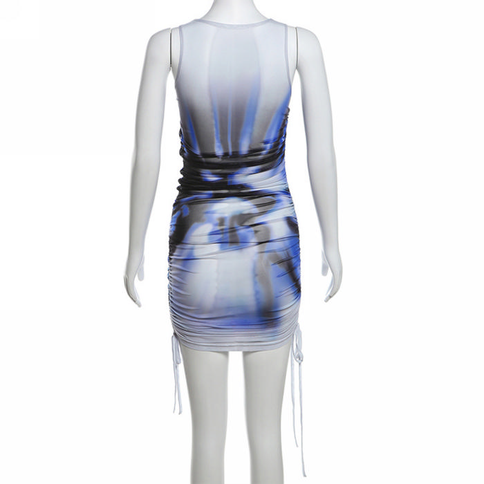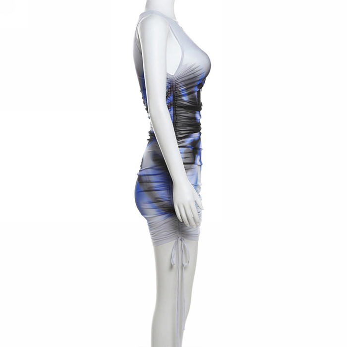 (Real Image)2024 Styles Women Spring/Summer Fashion Drawstring Slim Faded Sexy Sleeveless Bodycon DressSKU: #CF83345-1