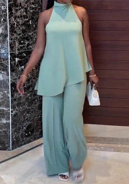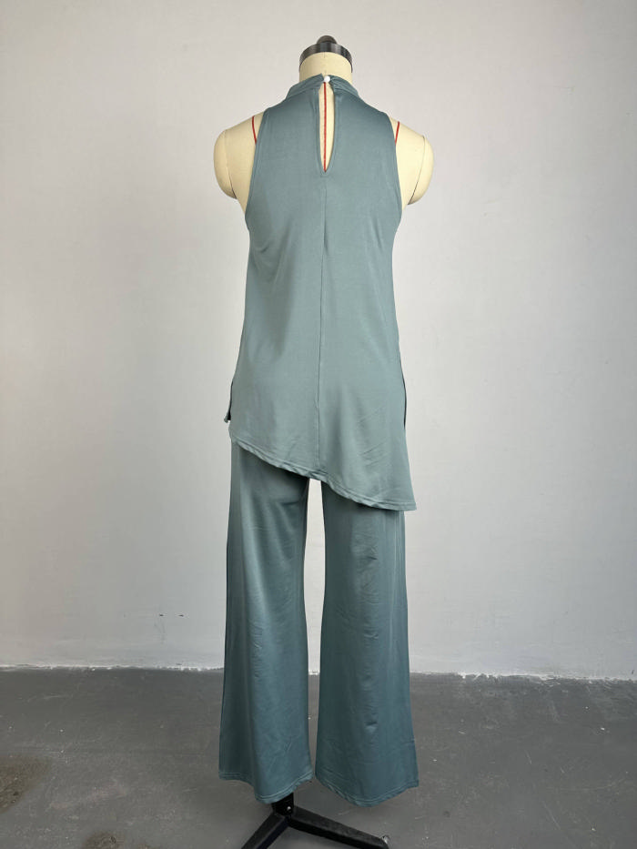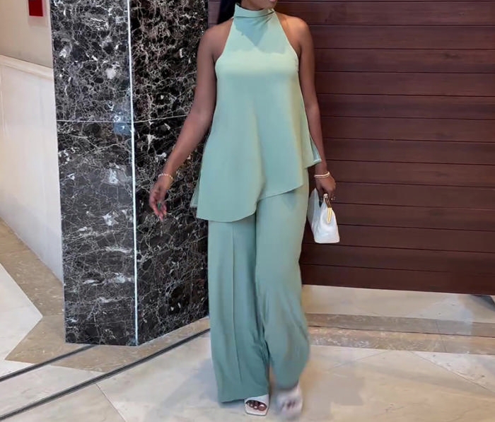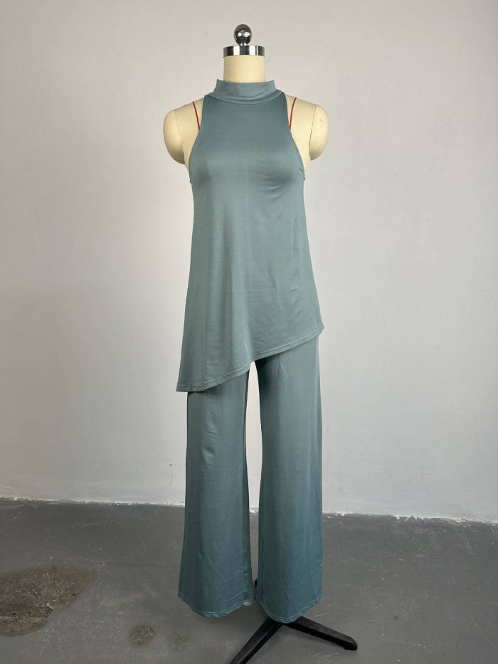 (Real Image)2024 Styles Women Spring/Summer Off-Shoulder Sleeveless Tank Top with Wide-Leg Pants Casual SetSKU: #CF91055-1
