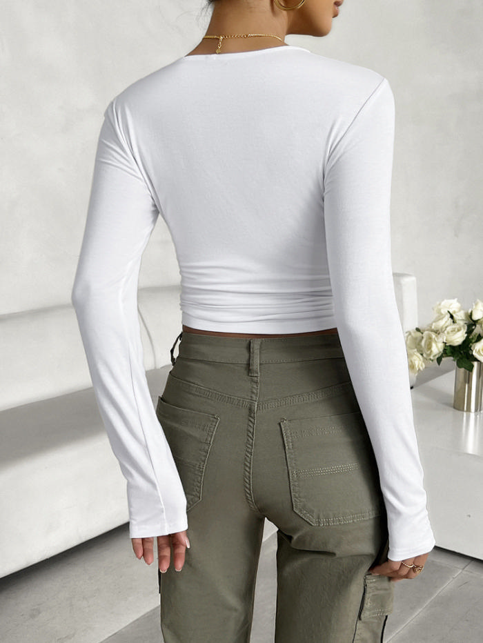 (Real Image)2024 Styles Women Spring/Summer Round Neck Solid Color Slim Fit Long Sleeve TopSKU: #XF45058-1