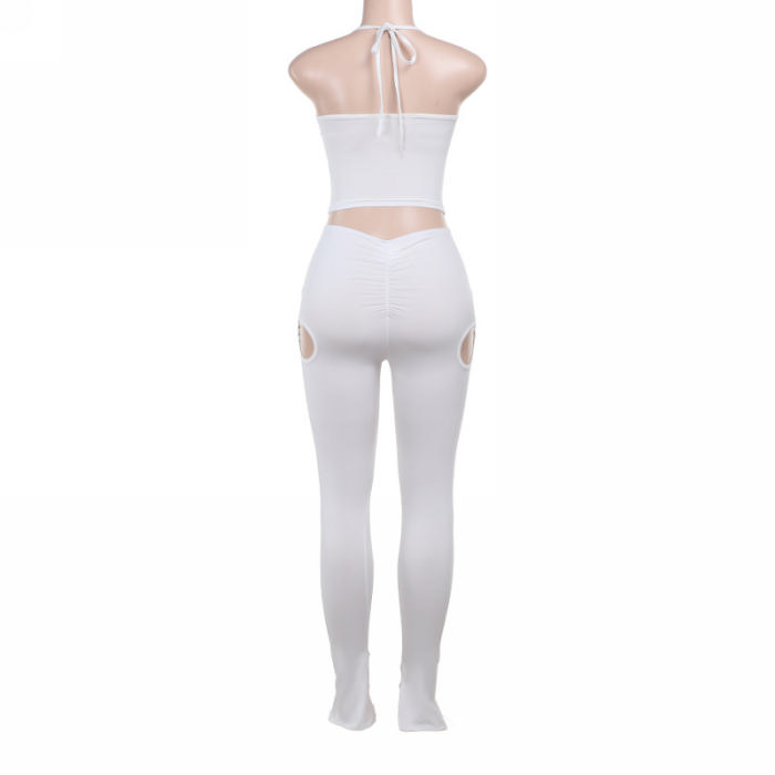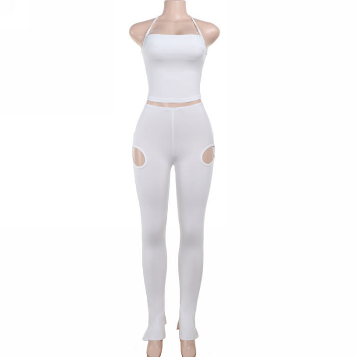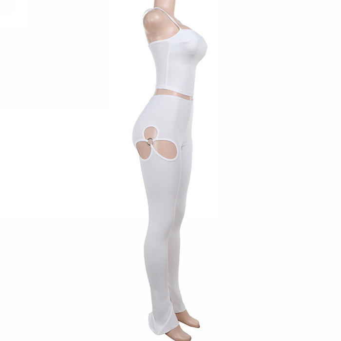 (Real Image)2024 Styles Women Spring/Summer Sexy Open-Work Ring Detail Long Pants and Tank Top SetSKU: #XF92883-1