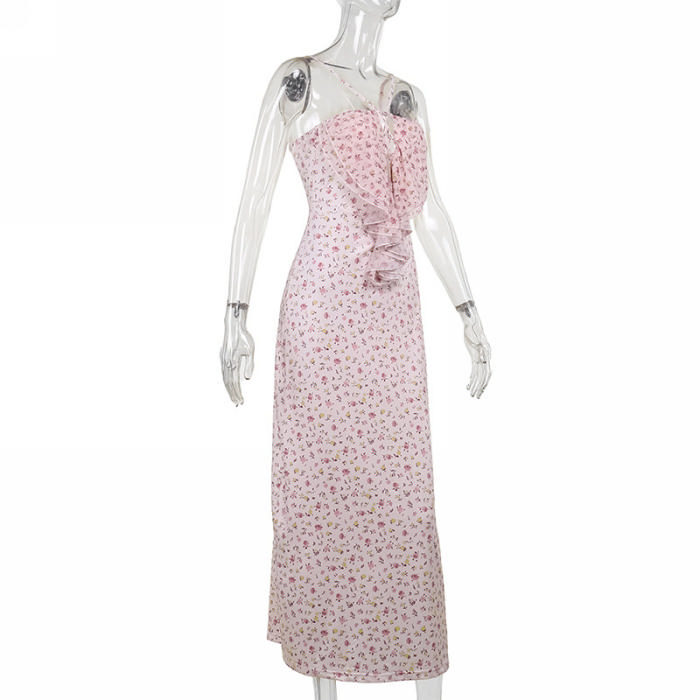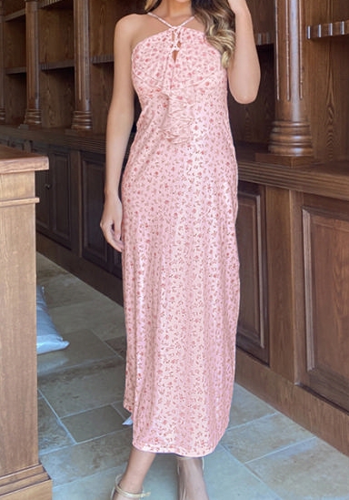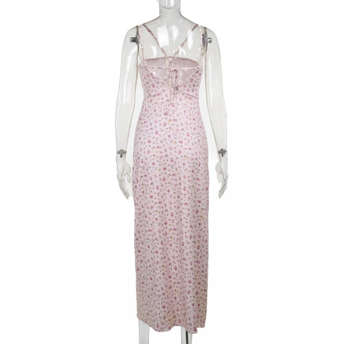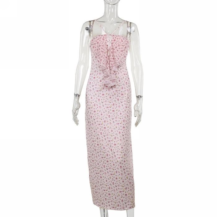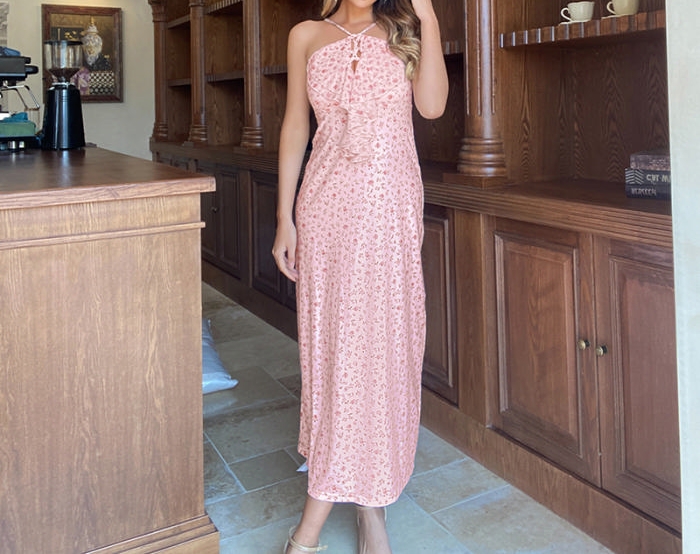 (Real Image)2024 Styles Women Spring/Summer Slim Fashion Halter Print Open Back Tied Maxi DressSKU: #XF92875-1