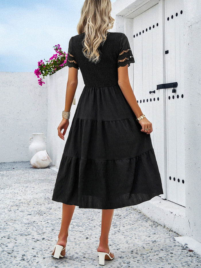(Real Image)2024 Styles Women Spring/Summer Solid Color Elegant Gathered Openwork DressSKU: #XF45061-3