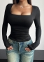 (Real Image)2024 Styles Women Spring/Summer Square Neck Long Sleeve Pullover Slim Fit Casual Fashion TopSKU: #XF45051-3