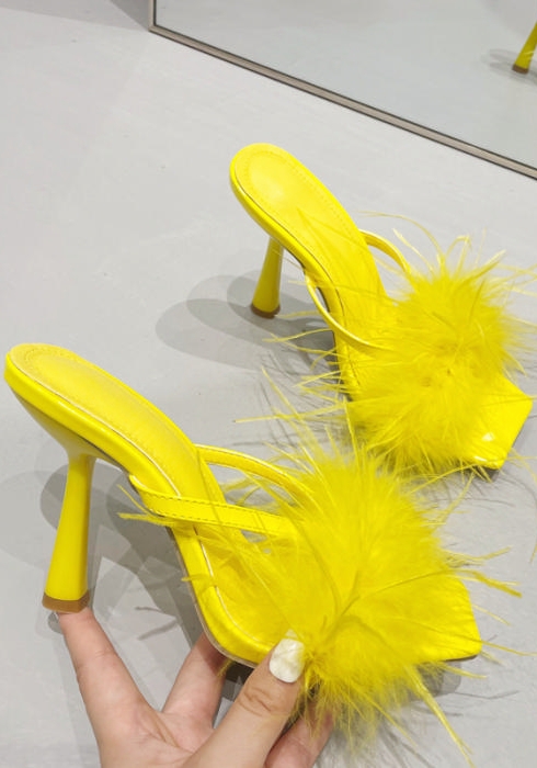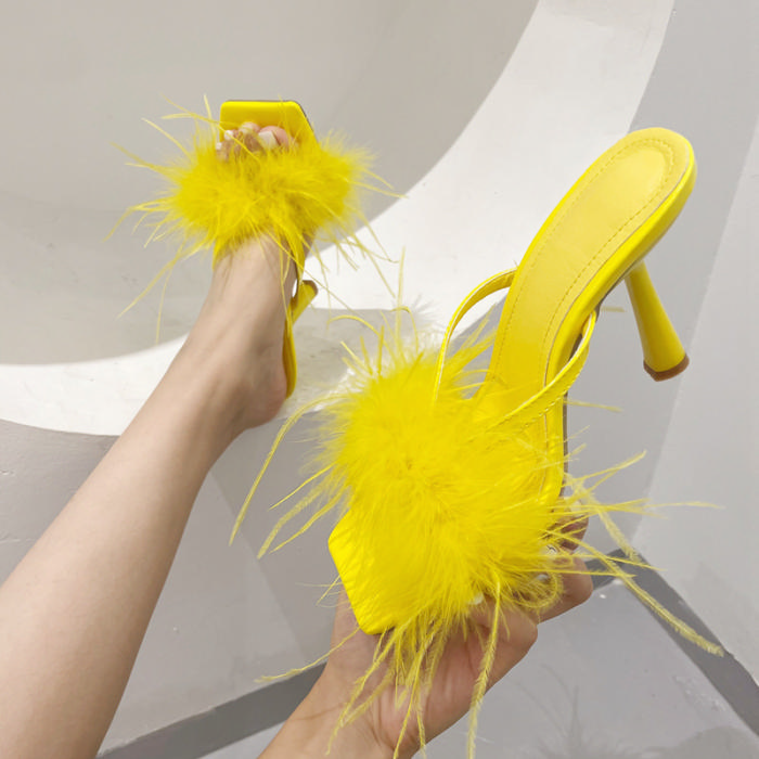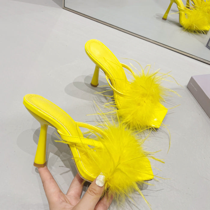 (Real Image)2024 Styles Women Square-Toe Fashion Furry High Heels MulesSKU: #CF46167-6