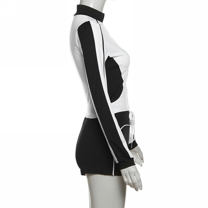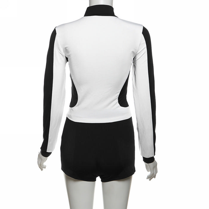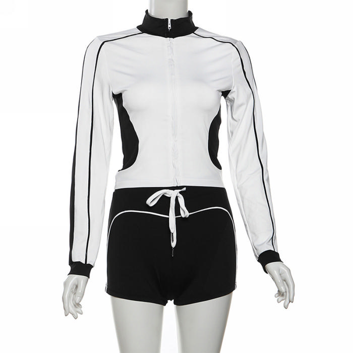 (Real Image)2024 Styles Women Stand-Out Collared Color-Blocked Zippered Sports Shorts Set with a Bold EdgeSKU: #CF83430-1