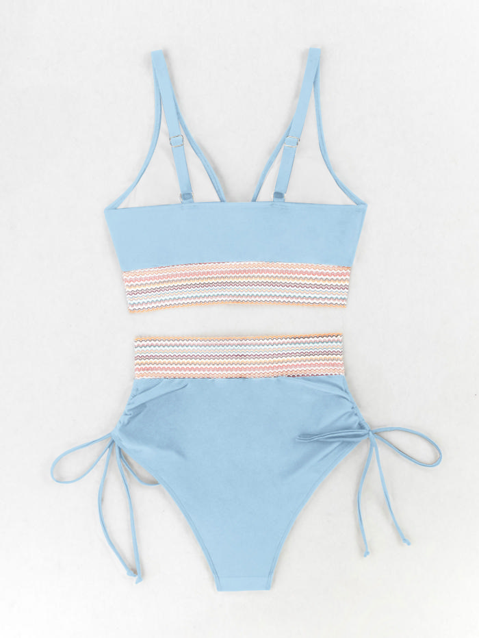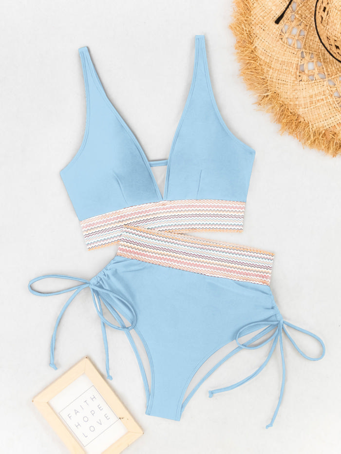 (Real Image)2024 Styles Women Strap-Detail Deep V-Neck Open Back Sexy Bikini SeparatesSKU: #CF56137-3