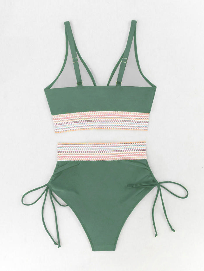 (Real Image)2024 Styles Women Strap-Detail Deep V-Neck Open Back Sexy Bikini SeparatesSKU: #CF56137-2