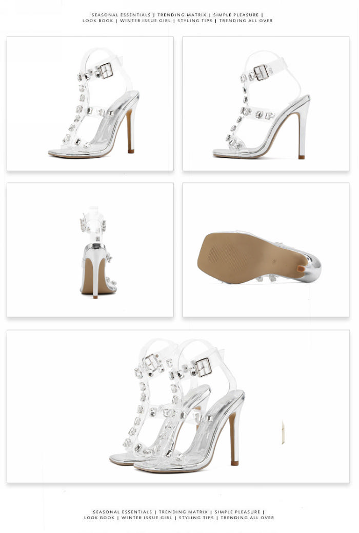 (Real Image)2024 Styles Women Strap Sandals with Transparent Bands and Rhinestones on a Square-Toe Thin High HeelsSKU: #CF46171-1