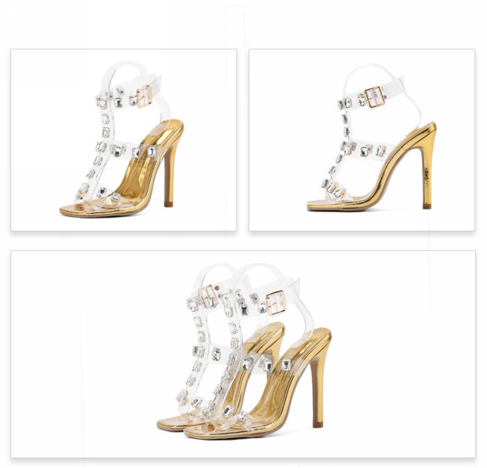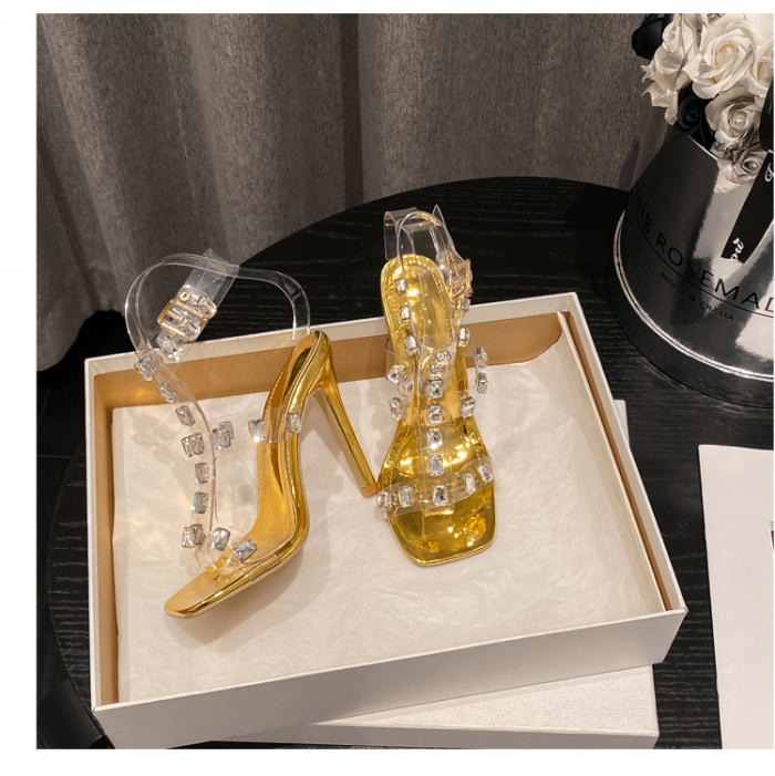 (Real Image)2024 Styles Women Strap Sandals with Transparent Bands and Rhinestones on a Square-Toe Thin High HeelsSKU: #CF46171-3
