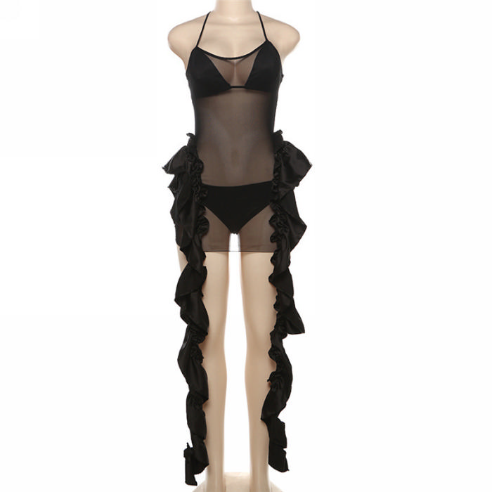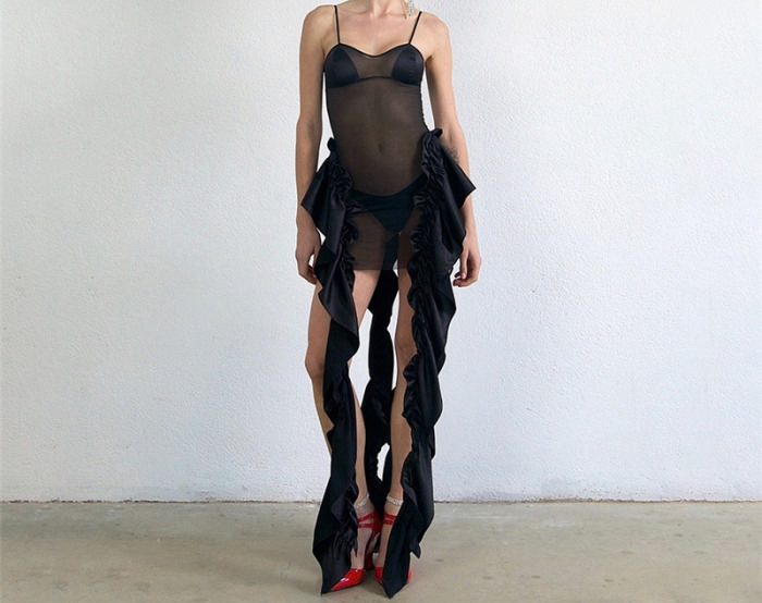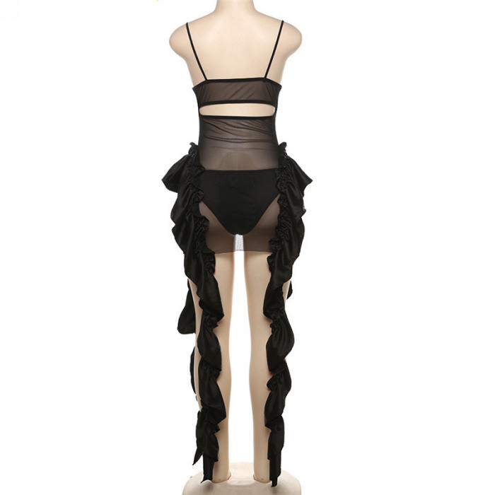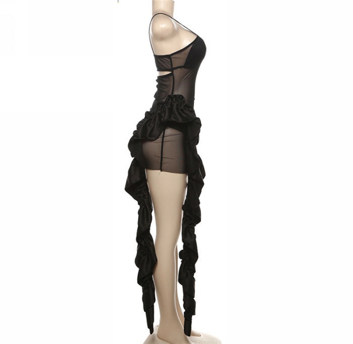 (Real Image)2024 Styles Women Strapless Tulle Sheer Fringe-Trimmed Fluttery Sash Mini DressSKU: #CF83407-1