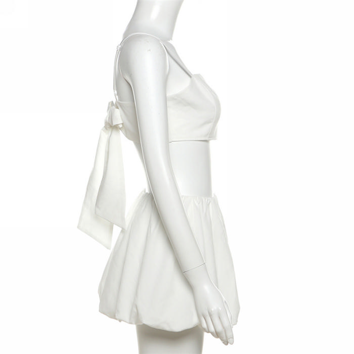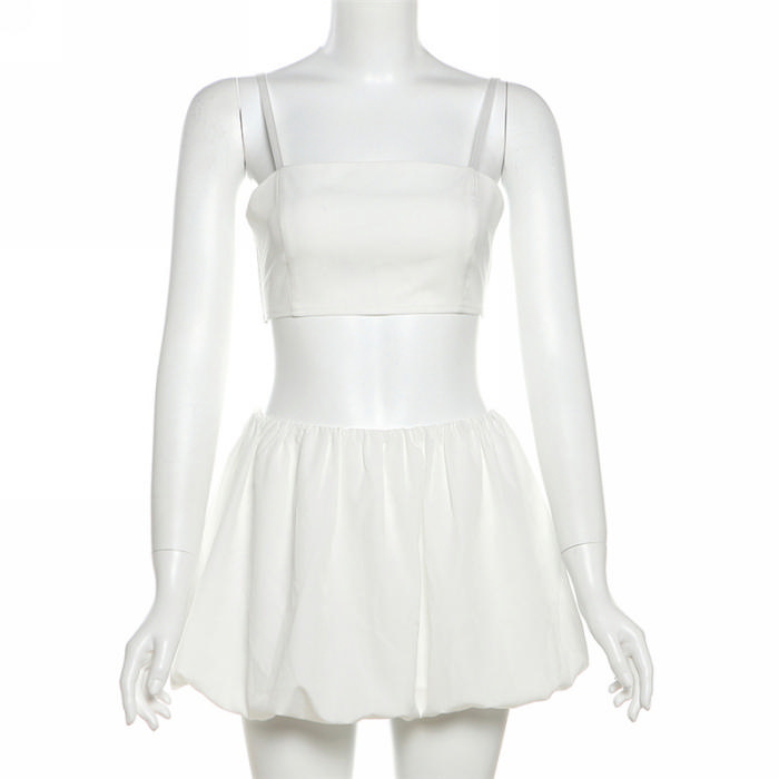 (Real Image)2024 Styles Women Strappy Tank Top and Puffy Mini Skirt Set with a Stylish TwistSKU: #CF83375-1