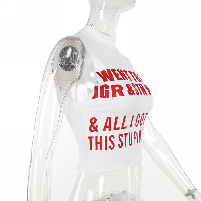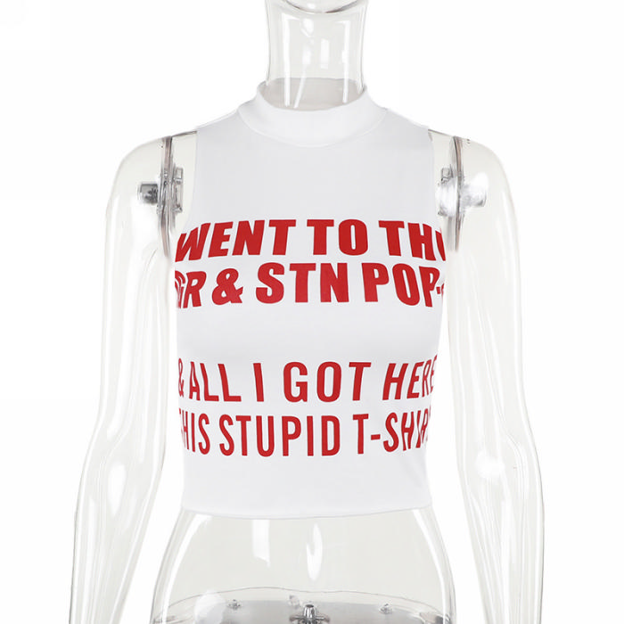 (Real Image)2024 Styles Women Street Style Casual Versatile Letter Print Halter VestSKU: #XF92847-1