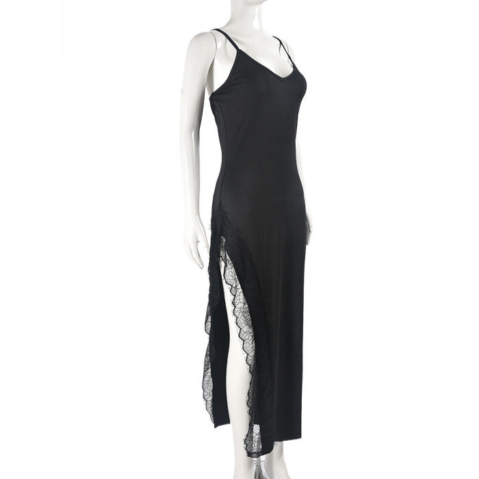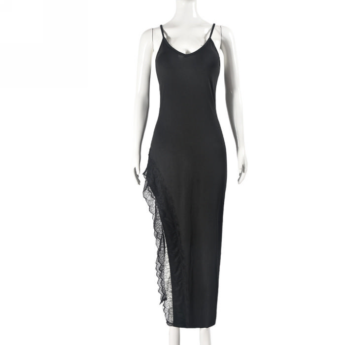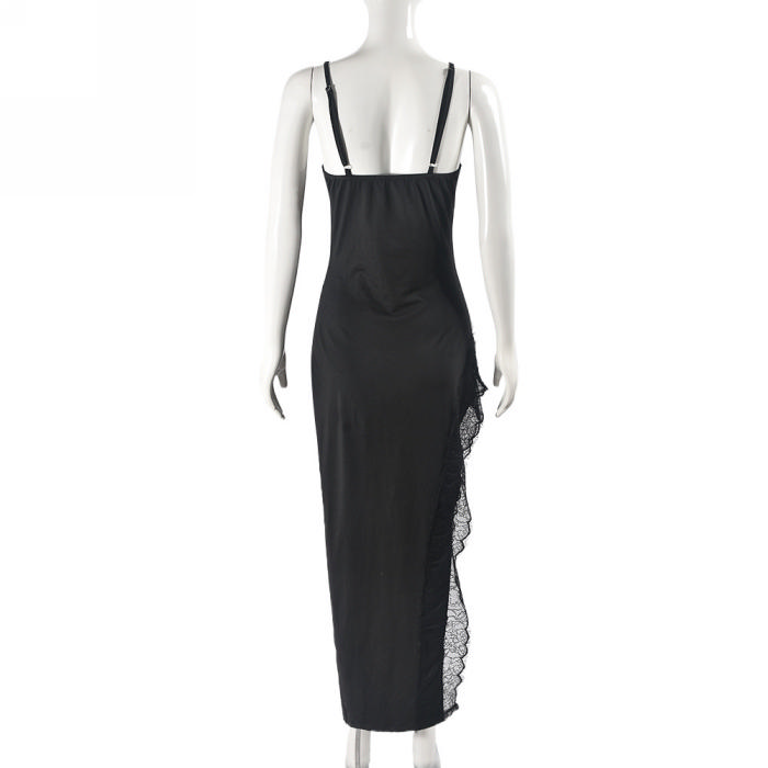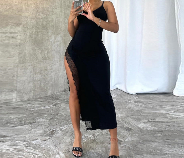 (Real Image)2024 Styles Women Street-Style Sexy Fitted Long Lace-Trimmed DressSKU: #CF59867-1