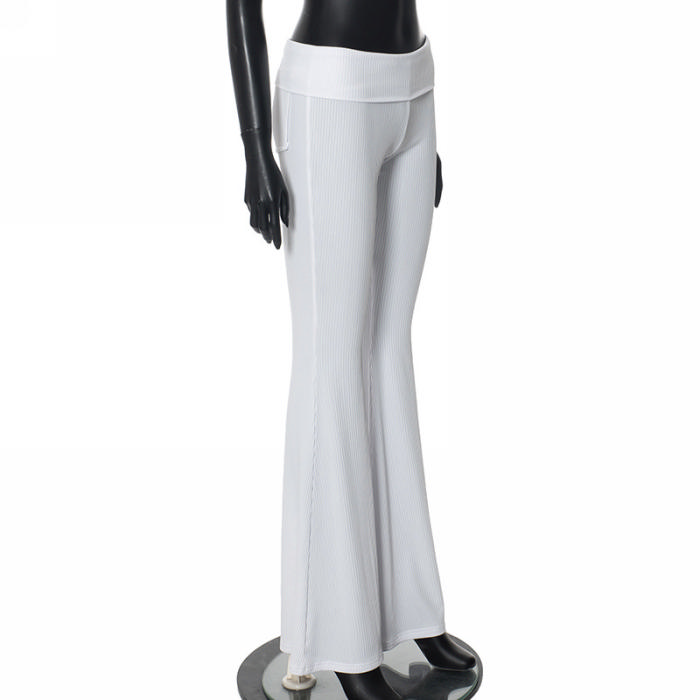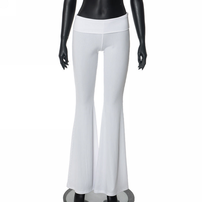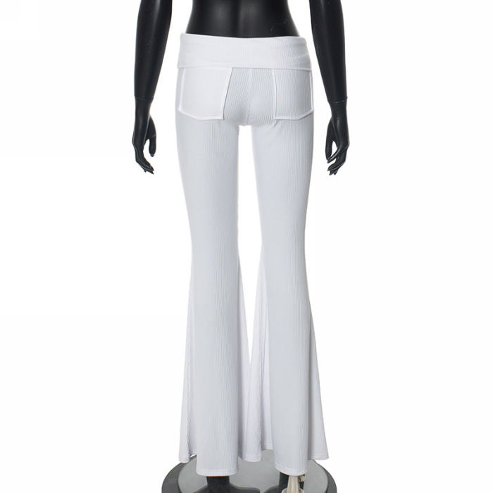 (Real Image)2024 Styles Women Stripe Stretch Waist Pocket Casual Flared PantsSKU: #CF42050-1