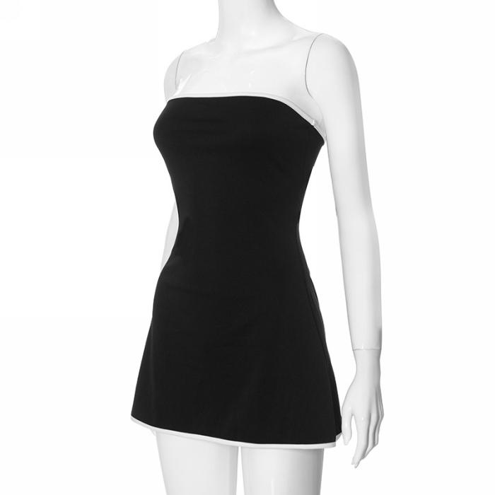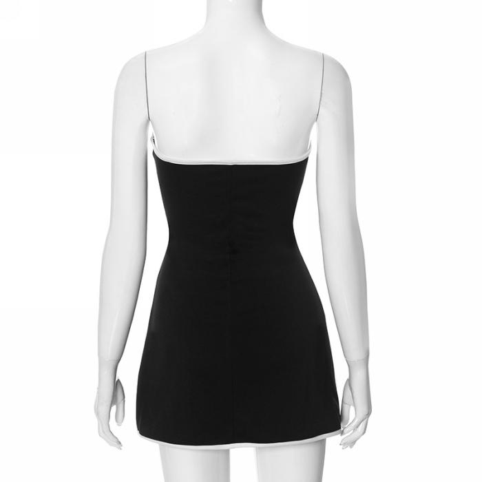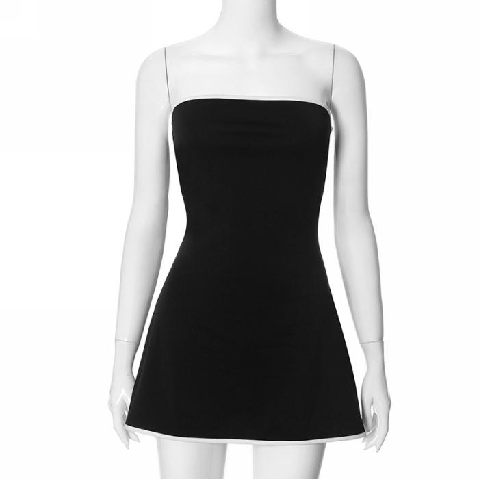 (Real Image)2024 Styles Women Stylish Casual Color-Blocking Halter Mini A-Line SkirtSKU: #CF92163-1