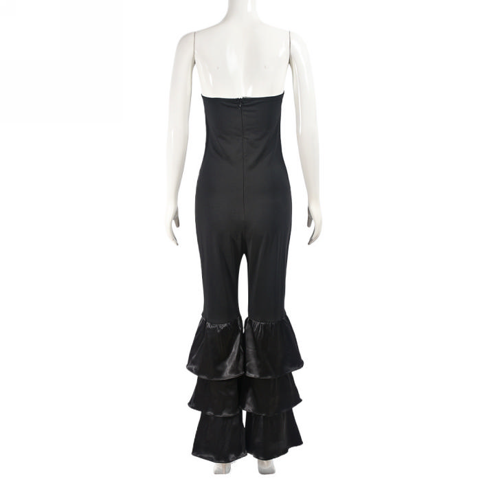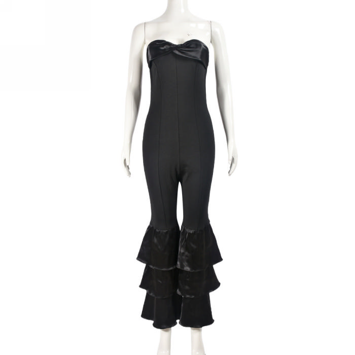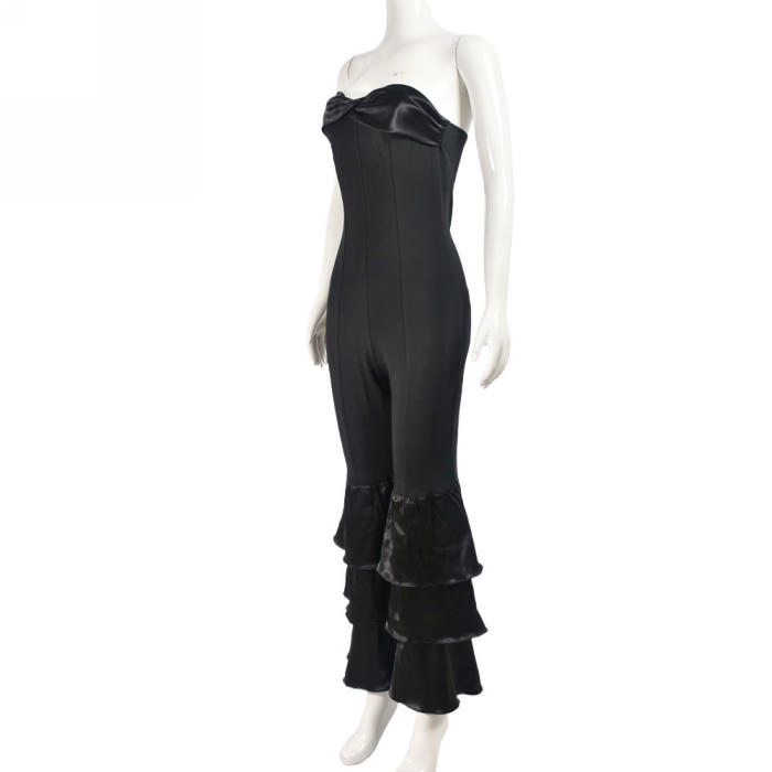 (Real Image)2024 Styles Women Stylish Elegance: Sleeveless Halter Neckline with Flared Bell Bottoms JumpsuitSKU: #CF59940-1