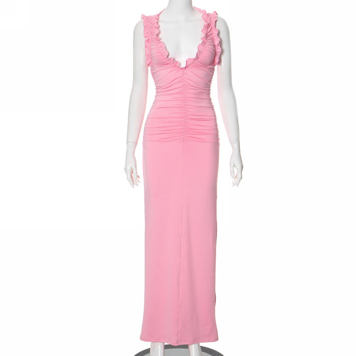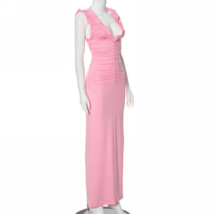 (Real Image)2024 Styles Women Stylish Lace-Trimmed Bodycon Elegant Maxi DressSKU: #CF92131-1