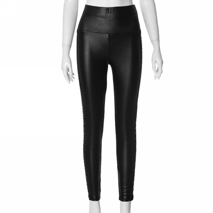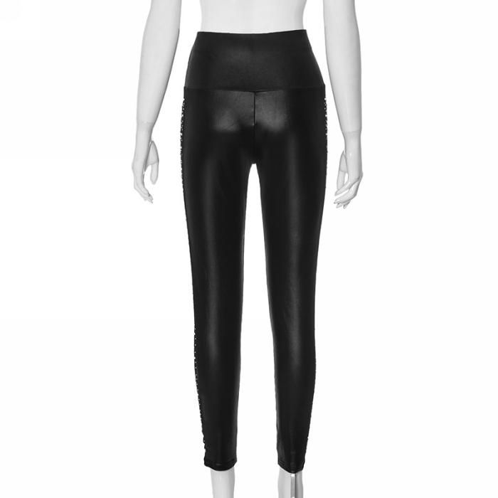 (Real Image)2024 Styles Women Stylish Rhinestone-Embellished Mesh-Paneled Slim Casual PantsSKU: #CF92054-1