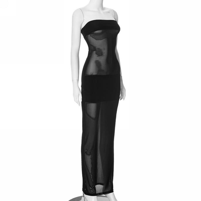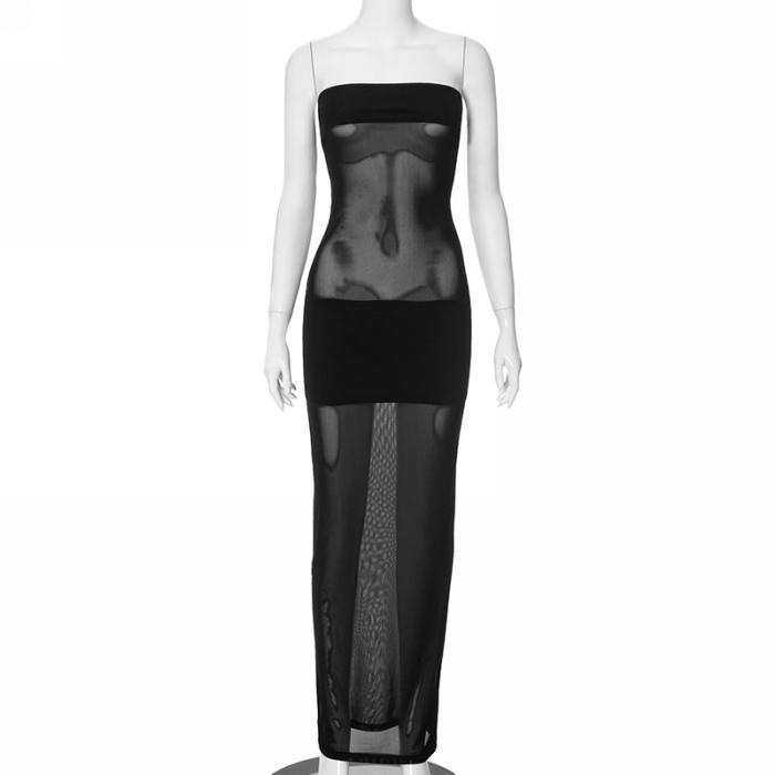 (Real Image)2024 Styles Women Stylish Sexy See-Through Mesh Halter Maxi DressSKU: #CF92114-1