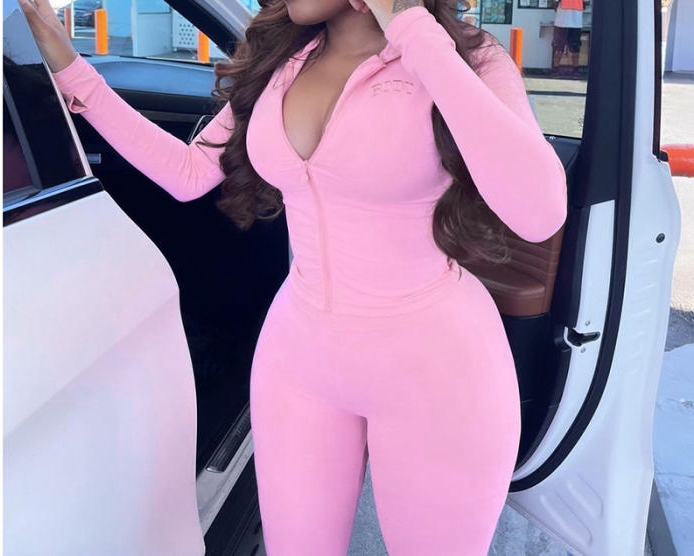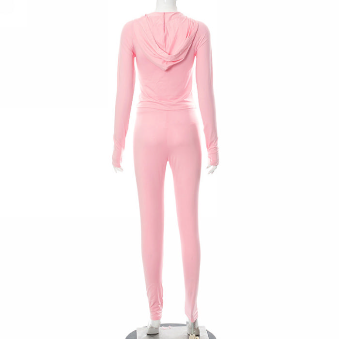 (Real Image)2024 Styles Women Stylish Solid-Color Embroidered Cropped Hoodie and Sexy Tight Pants SetSKU: #CF92152-1