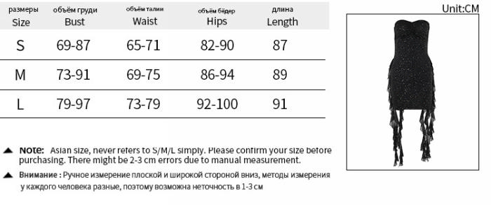 | Size | Bust | Waist | Hips |