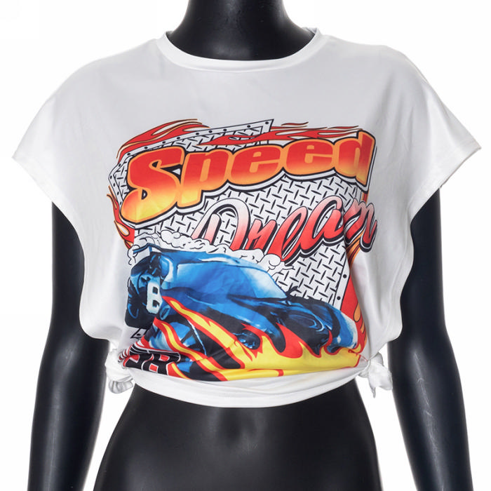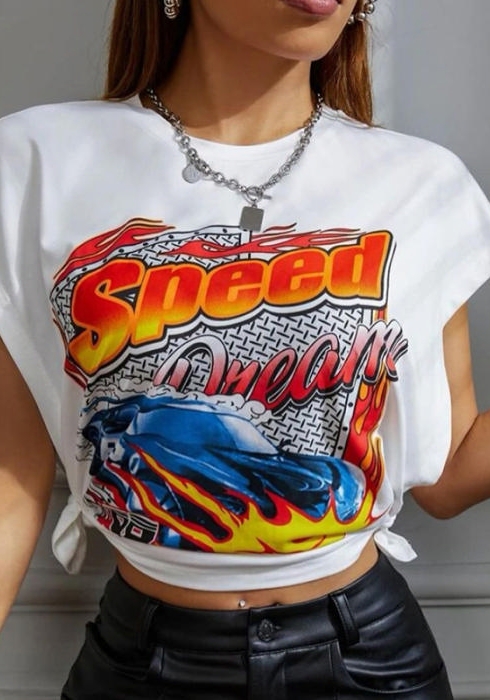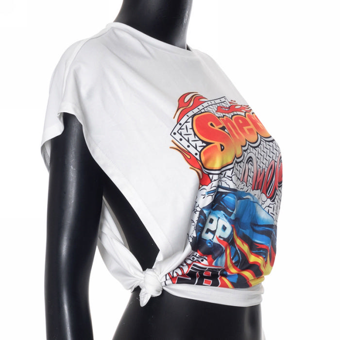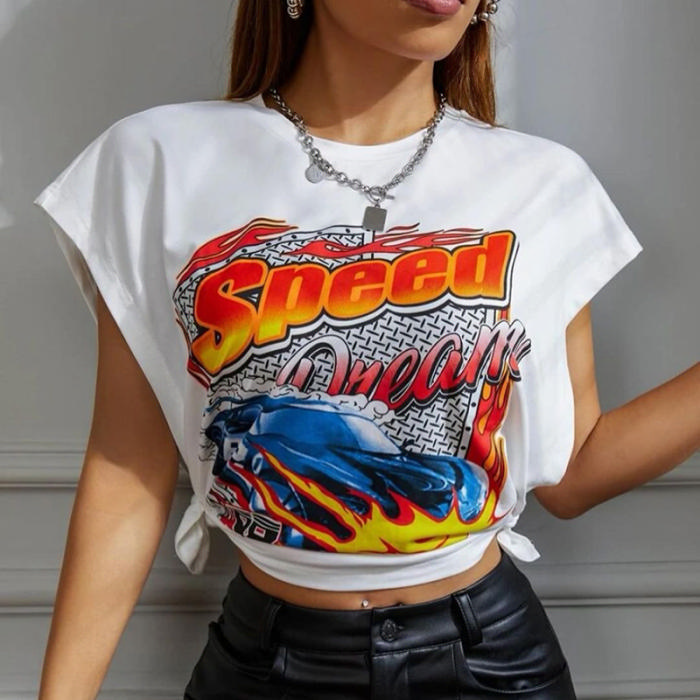 (Real Image)2024 Styles Women Summer 3D Print Round Neck Sleeveless Slit Casual Crop TopSKU: #CF47925-1
