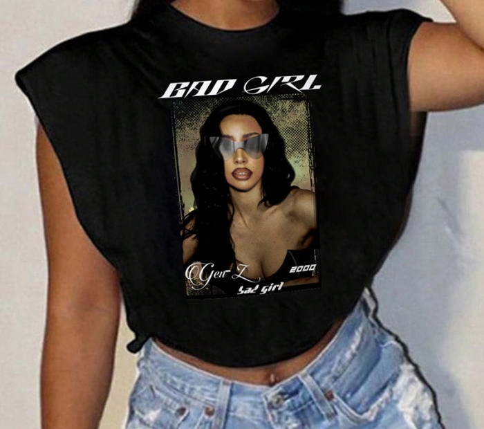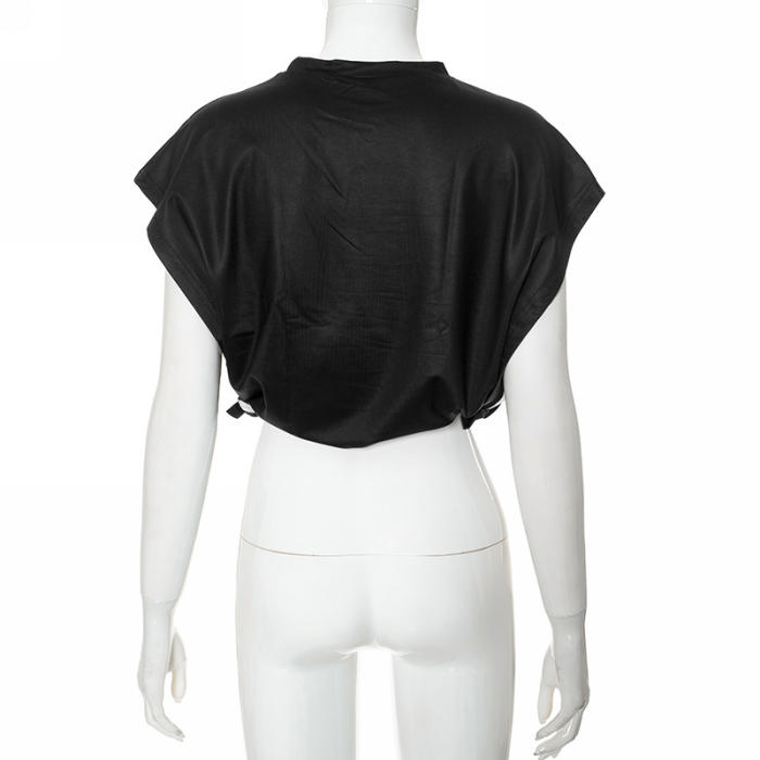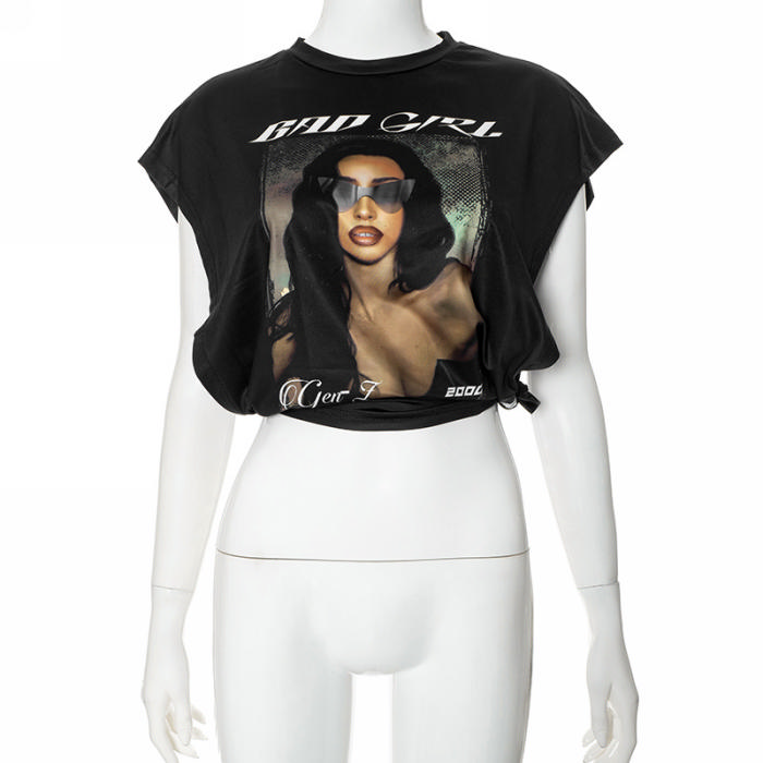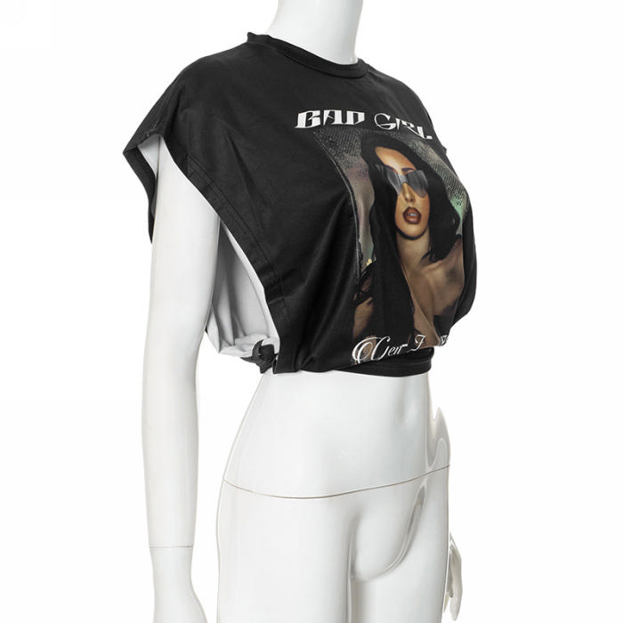 (Real Image)2024 Styles Women Summer 3D Print Round Neck Sleeveless Slit Casual Crop TopSKU: #CF47925-7