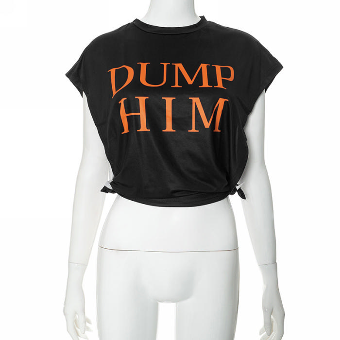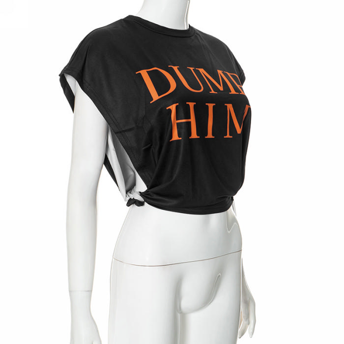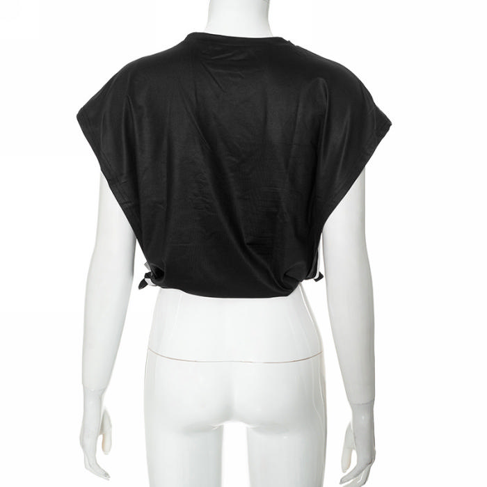 (Real Image)2024 Styles Women Summer 3D Print Round Neck Sleeveless Slit Casual Crop TopSKU: #CF47925-5