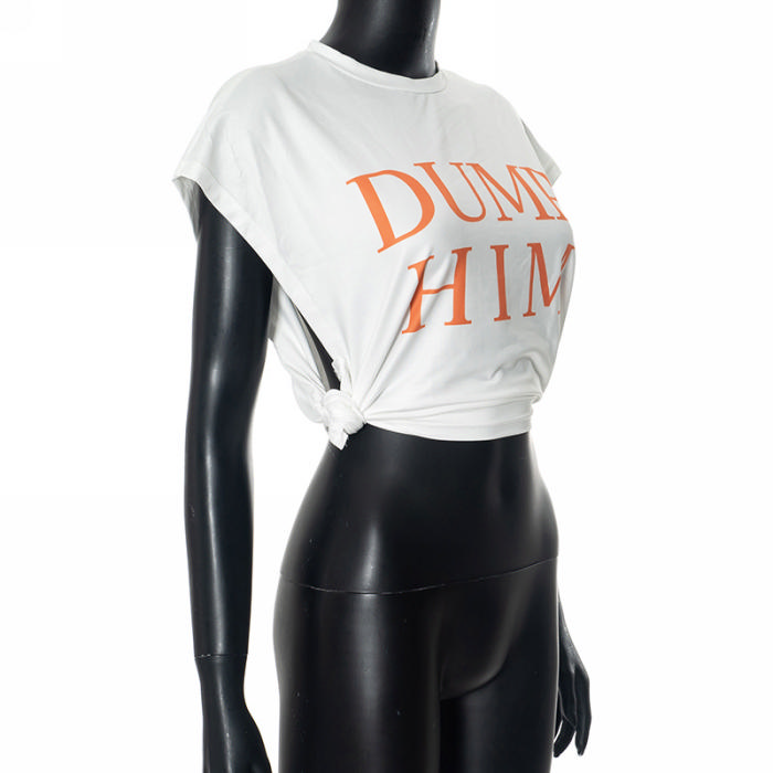 (Real Image)2024 Styles Women Summer 3D Print Round Neck Sleeveless Slit Casual Crop TopSKU: #CF47925-4