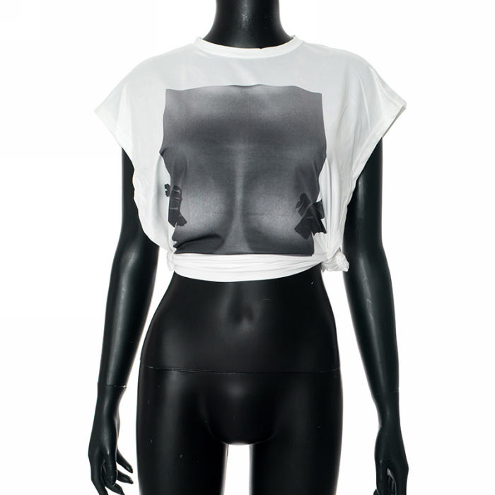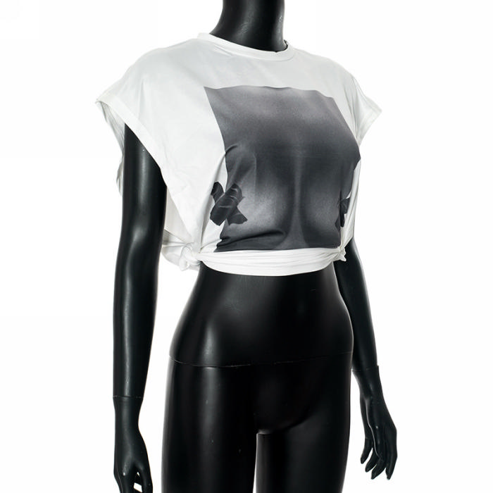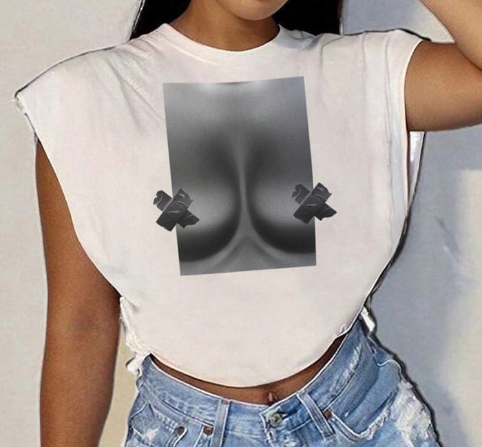 (Real Image)2024 Styles Women Summer 3D Print Round Neck Sleeveless Slit Casual Crop TopSKU: #CF47925-2