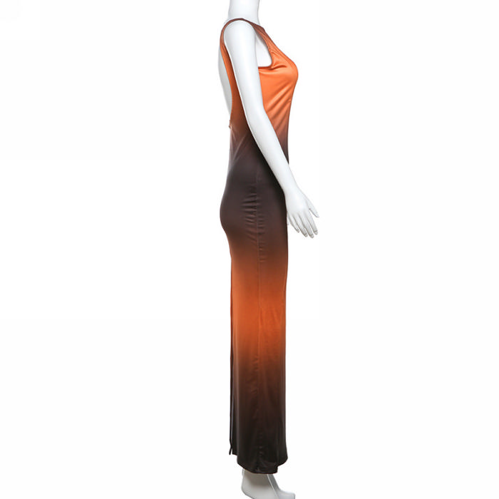 (Real Image)2024 Styles Women Summer Backless Split Sleeveless Slimming Bodycon Maxi DressSKU: #CF77817-1