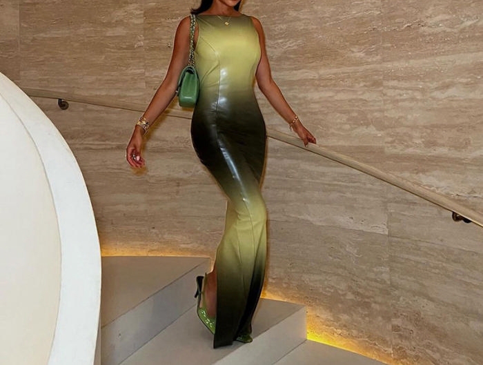 (Real Image)2024 Styles Women Summer Backless Split Sleeveless Slimming Bodycon Maxi DressSKU: #CF77817-2