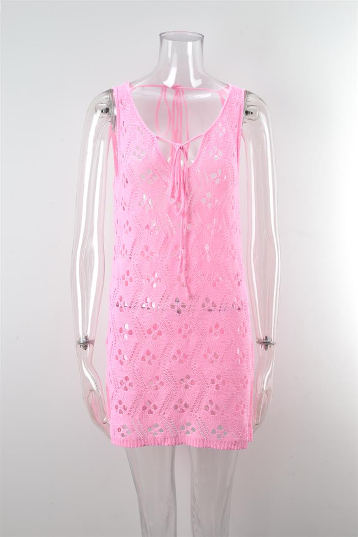 (Real Image)2024 Styles Women Summer Beach Cover Up Chest Tie Hollow Seaside Vacation Swimsuit CardiganSKU: #GF01022-5