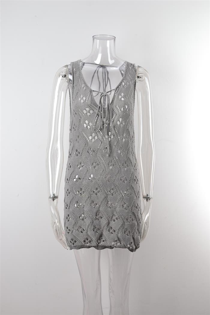 (Real Image)2024 Styles Women Summer Beach Cover Up Chest Tie Hollow Seaside Vacation Swimsuit CardiganSKU: #GF01022-4