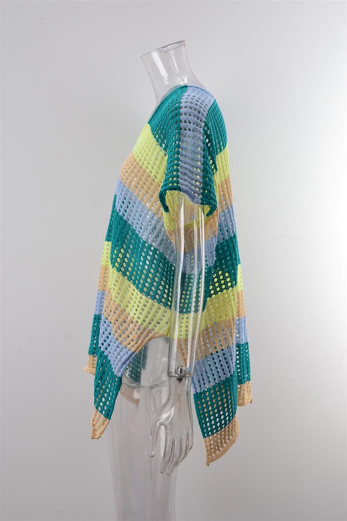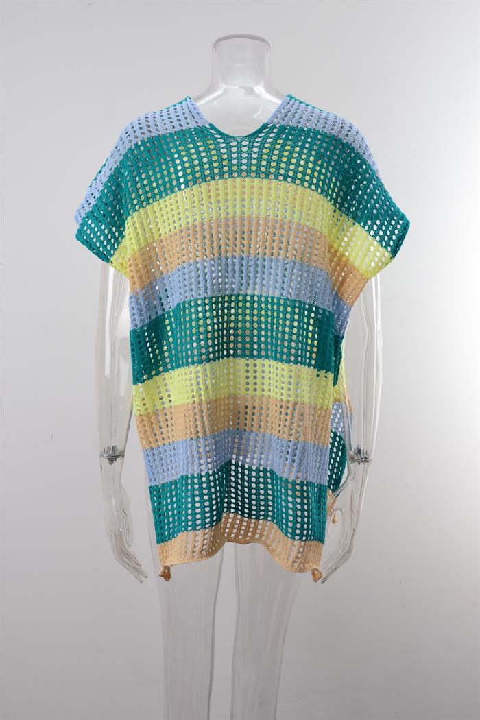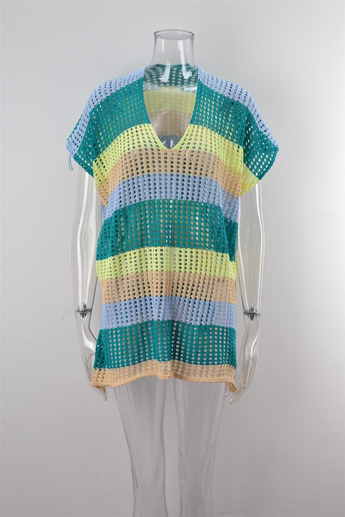 (Real Image)2024 Styles Women Summer Beach Cover Up Color Block Loose Bikini Cover Up Vacation Sun Protection ClothingSKU: #GF01009-1
