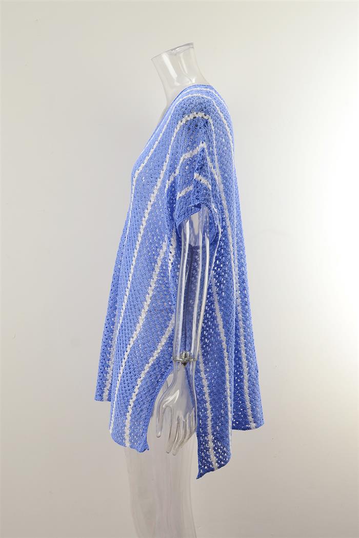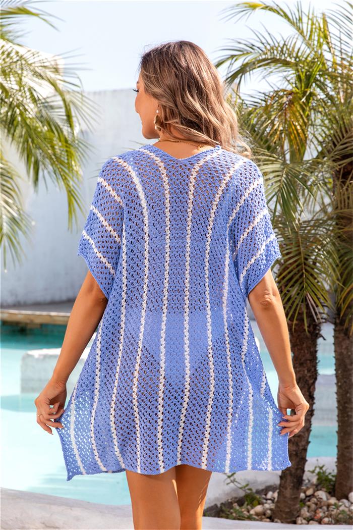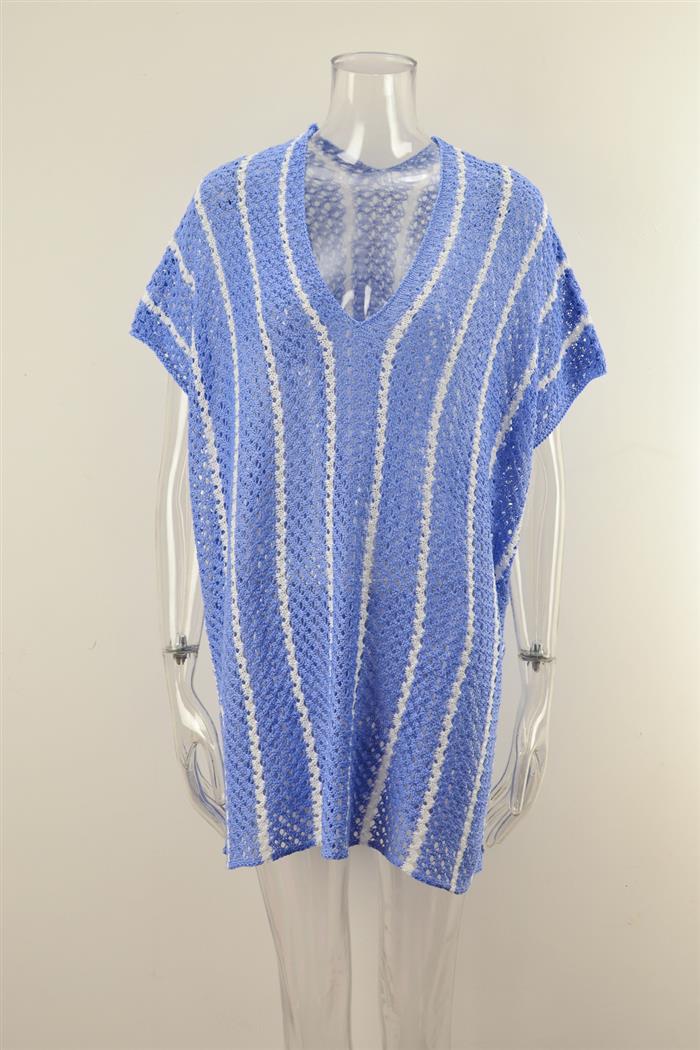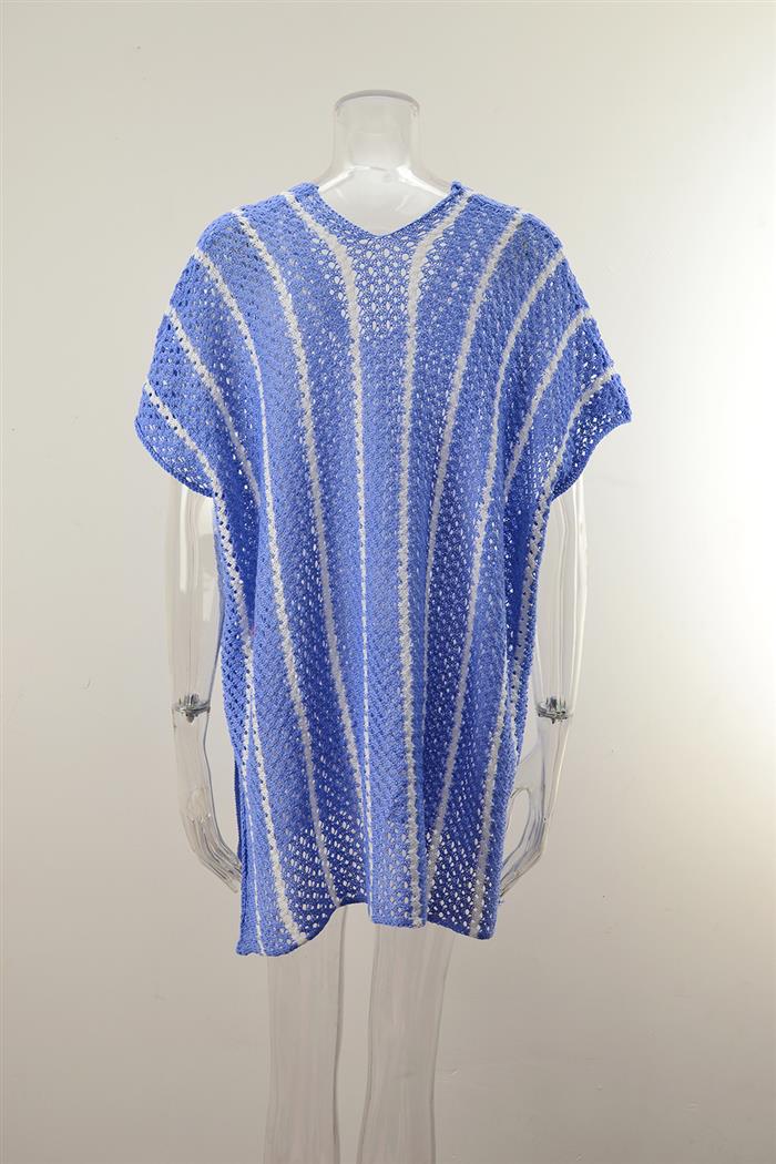 (Real Image)2024 Styles Women Summer Beach Knitted Sun Protection Clothing Bikini Vacation Dress Plus Size Loose Color Block Cover UpSKU: #GF01012-4