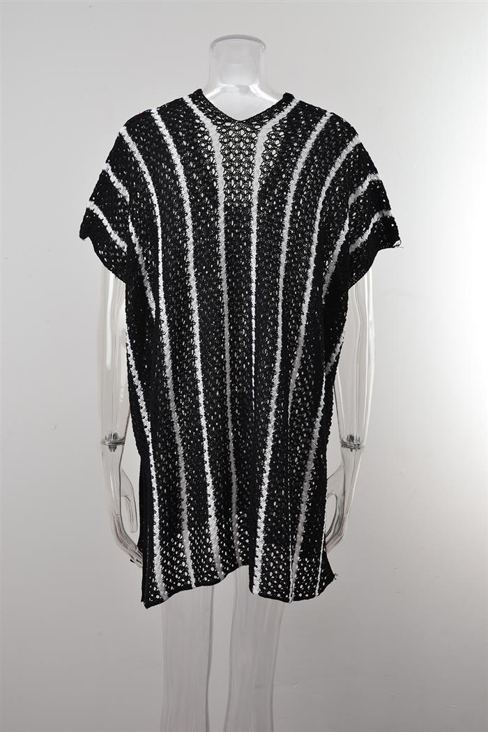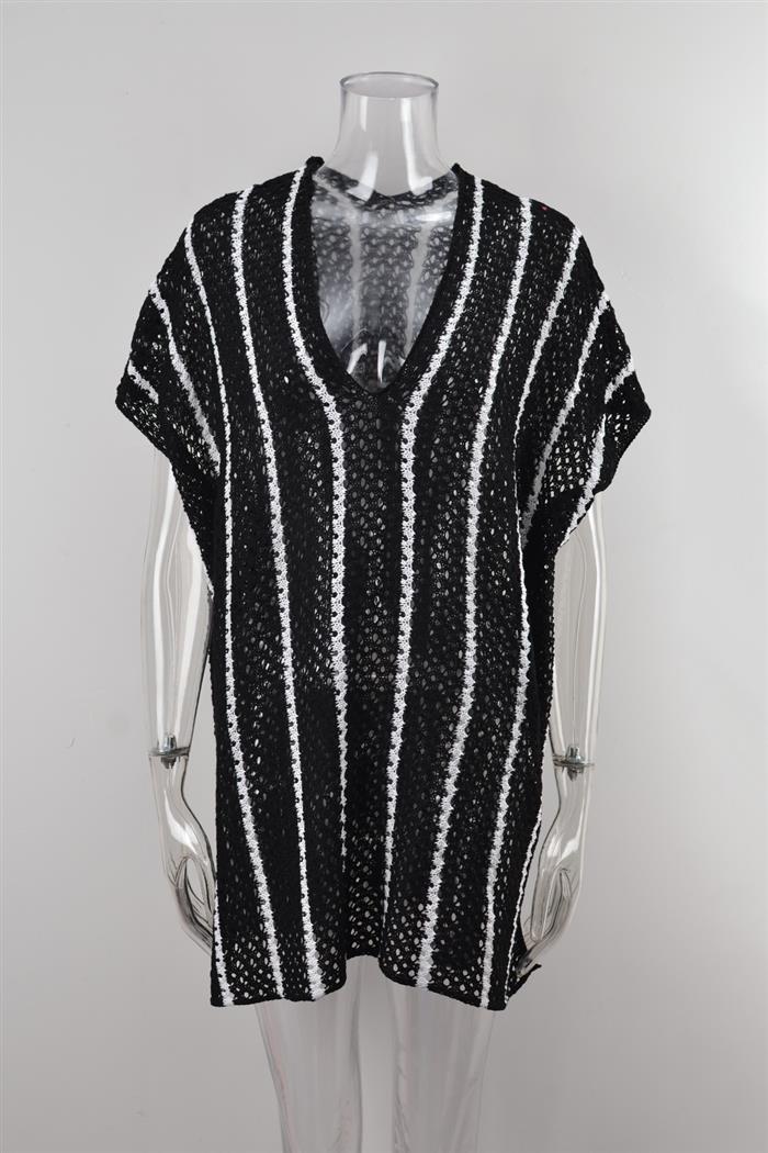 (Real Image)2024 Styles Women Summer Beach Knitted Sun Protection Clothing Bikini Vacation Dress Plus Size Loose Color Block Cover UpSKU: #GF01012-2