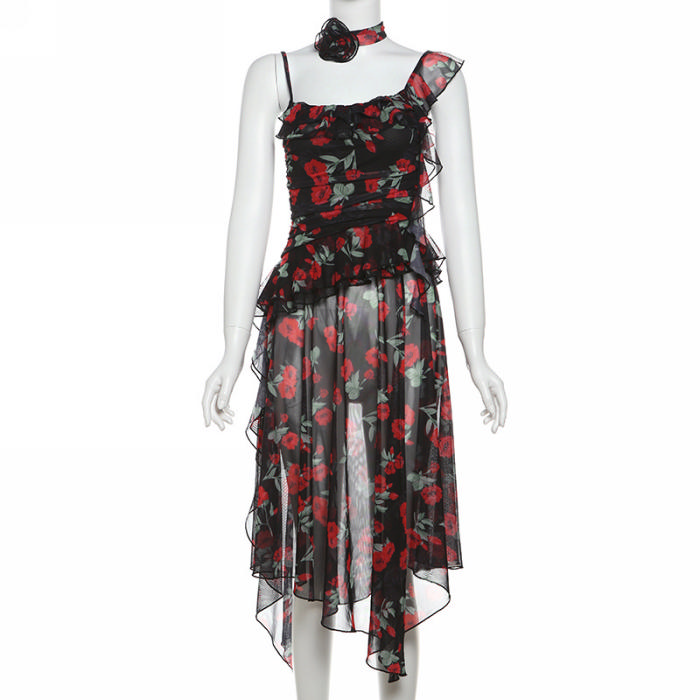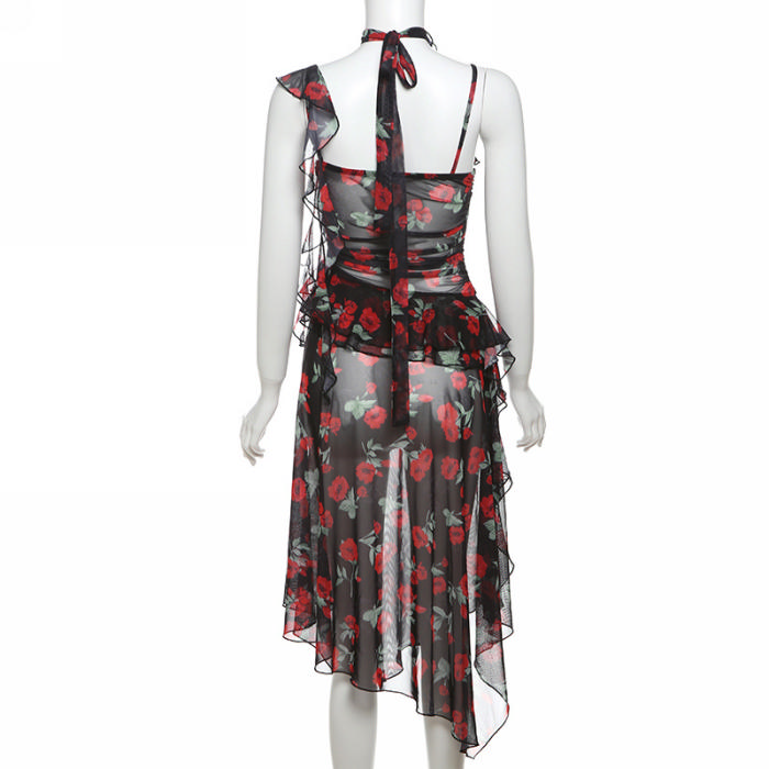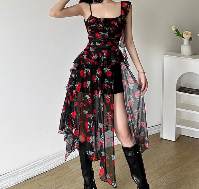 (Real Image)2024 Styles Women Summer Charming Sexy Spice Girl Slim Fit Split Backless Printed Slip DressSKU: #CF77767-1