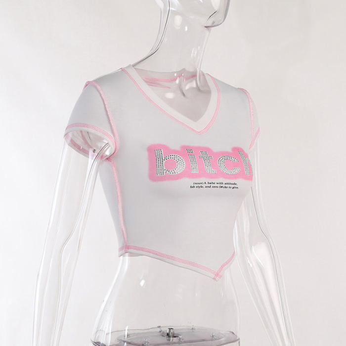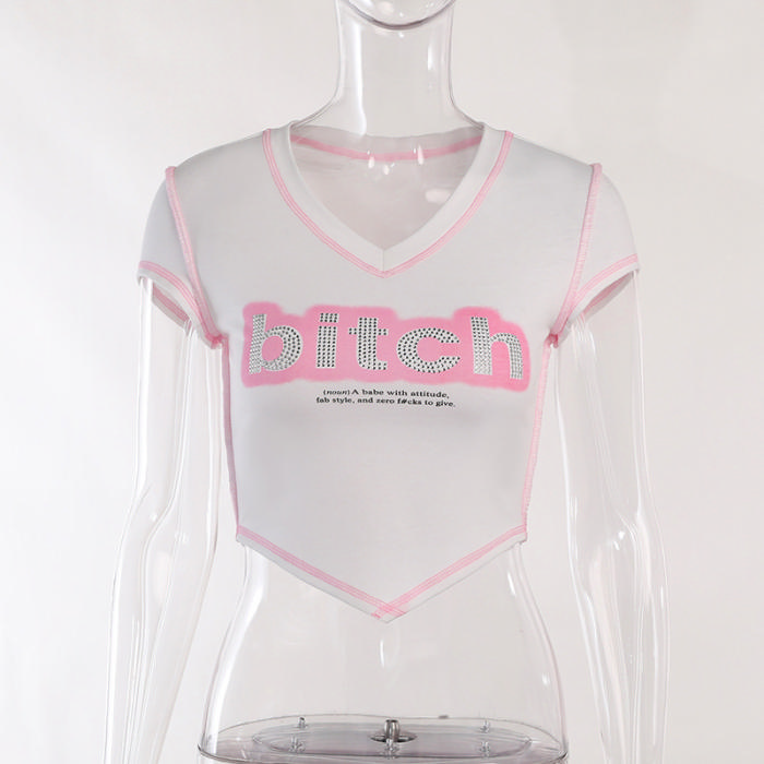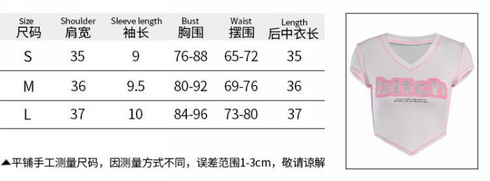 (Real Image)2024 Styles Women Summer Color-Blocked Letter Print Spicy Short Sleeve Street Style Crop Top, Versatile TankSKU: #XF92852-1