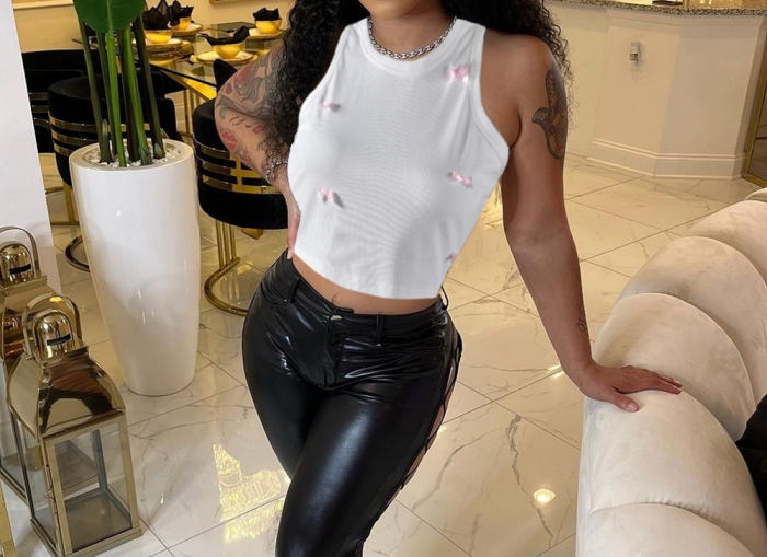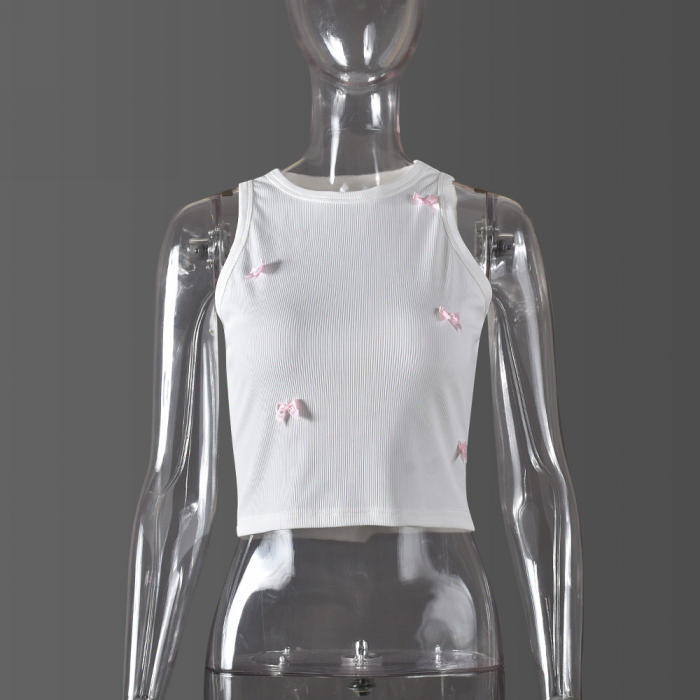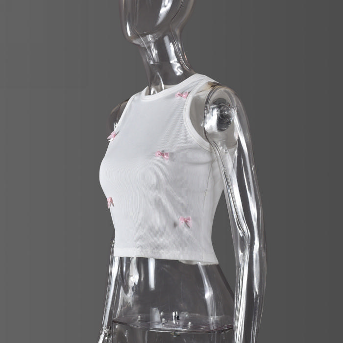 (Real Image)2024 Styles Women Summer Cool Round Neck Crop Top with Bow Tie Fashionable TankSKU: #CF59849-1