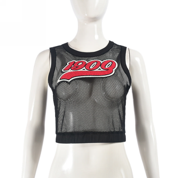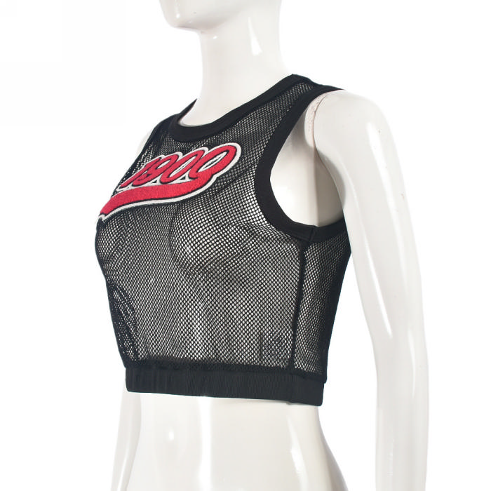 (Real Image)2024 Styles Women Summer Crop Top Mesh See-Through Embroidered Western Style Tank TopSKU: #CF75079-1
