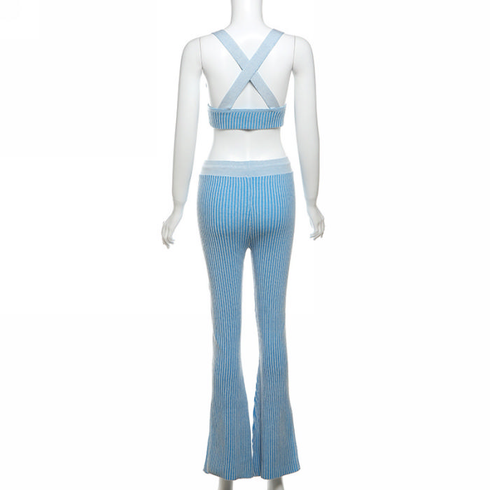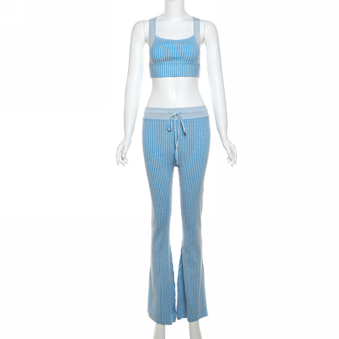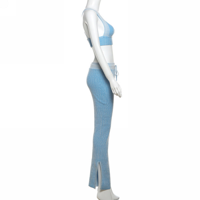 (Real Image)2024 Styles Women Summer Crop Top Slim Fit High Waist Split Flared Lace-Up Pants SetSKU: #CF77773-1