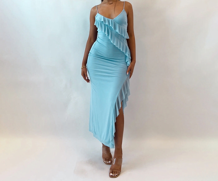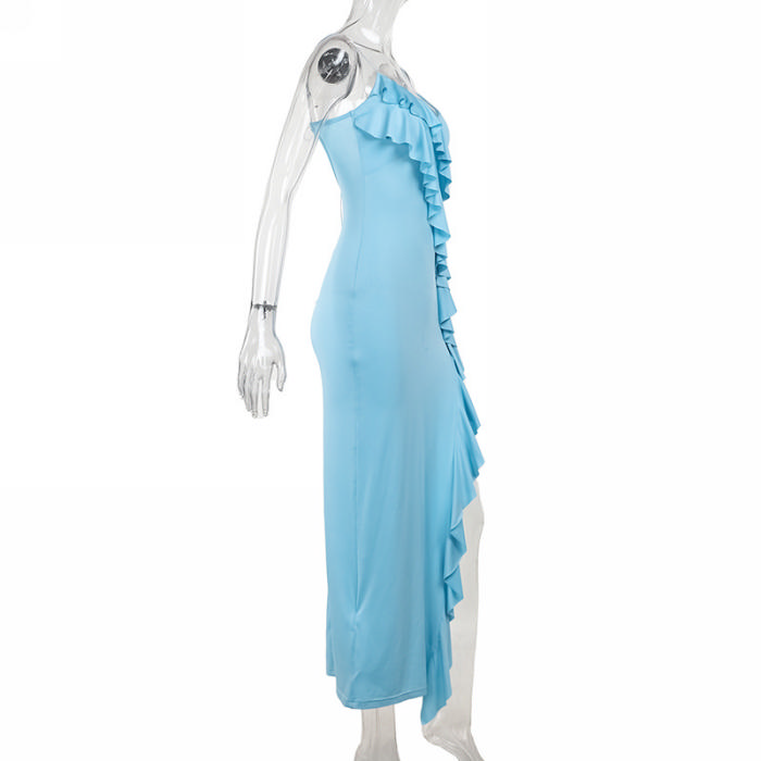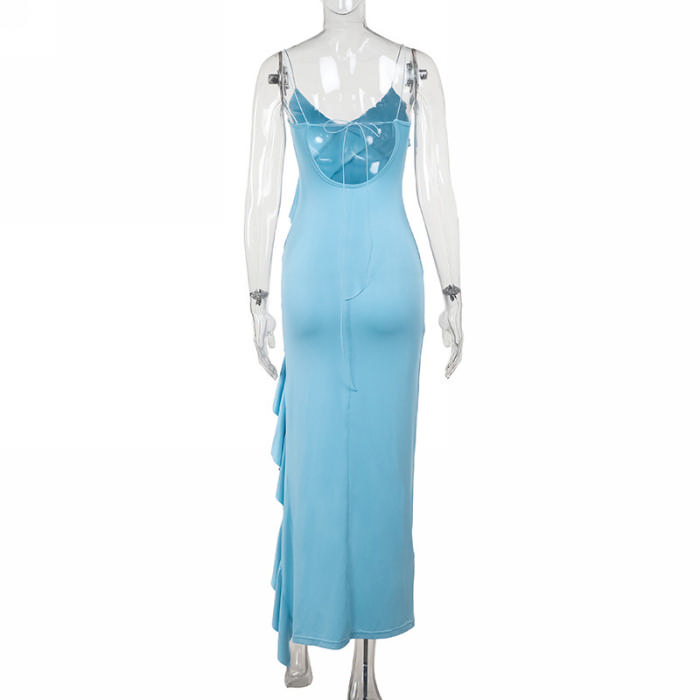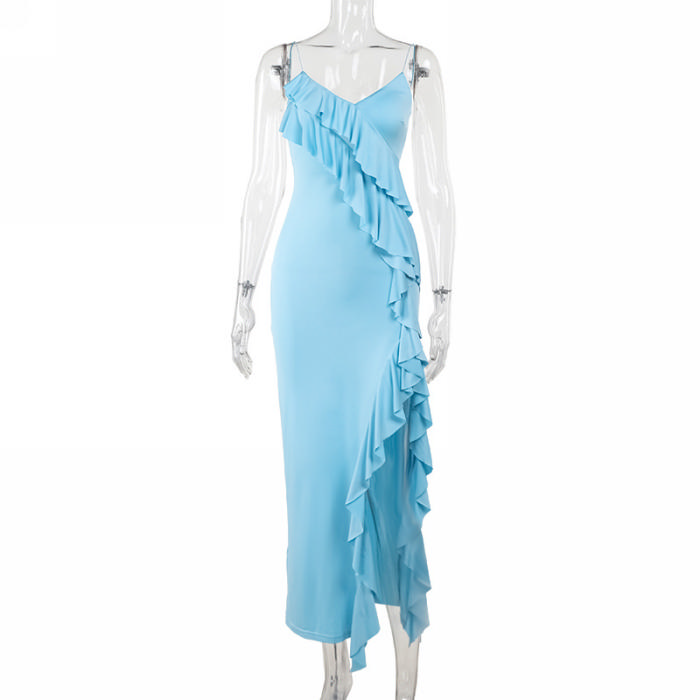 (Real Image)2024 Styles Women Summer Elegant Dress, Western Style Sexy V-Neck Pleated Halter DressSKU: #XF92877-1