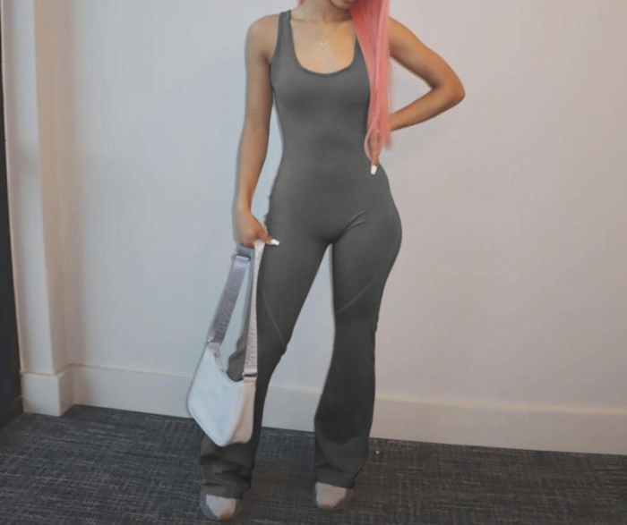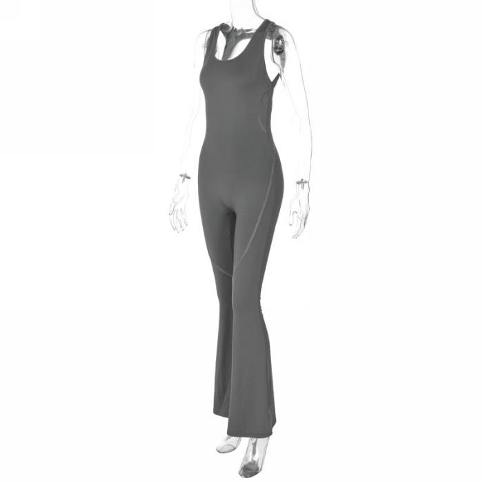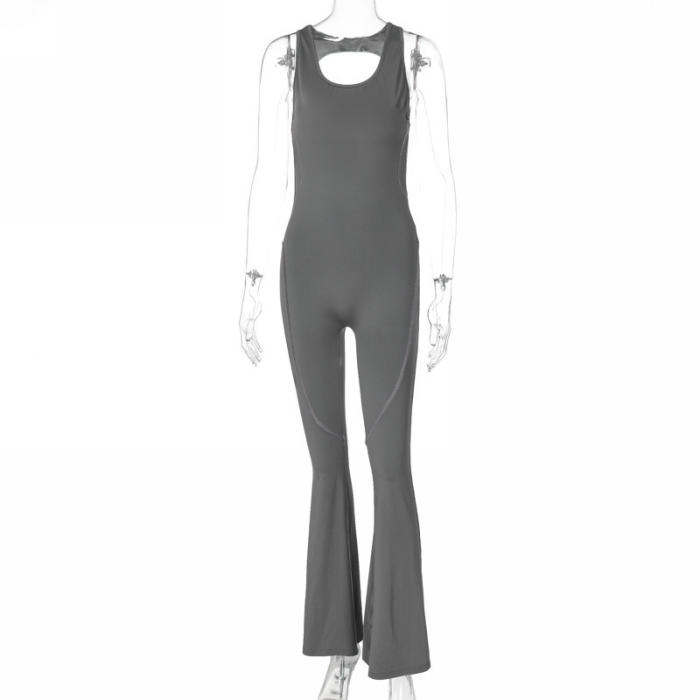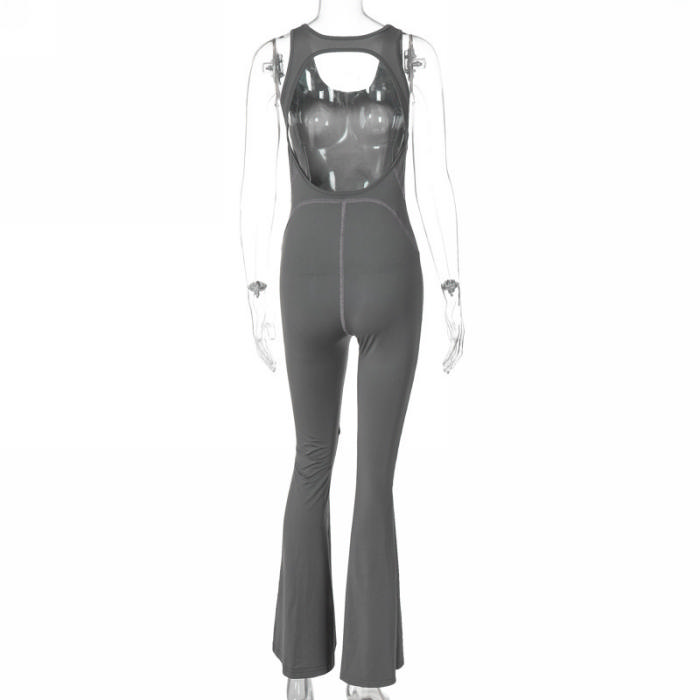 (Real Image)2024 Styles Women Summer Fashion Backless Solid Color Sports Yoga JumpsuitSKU: #CF88230-1