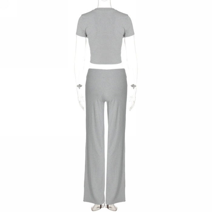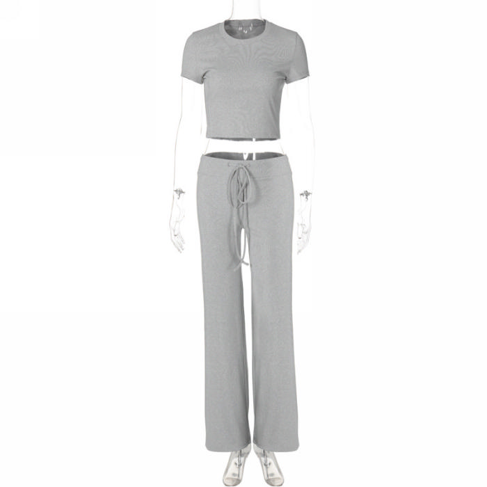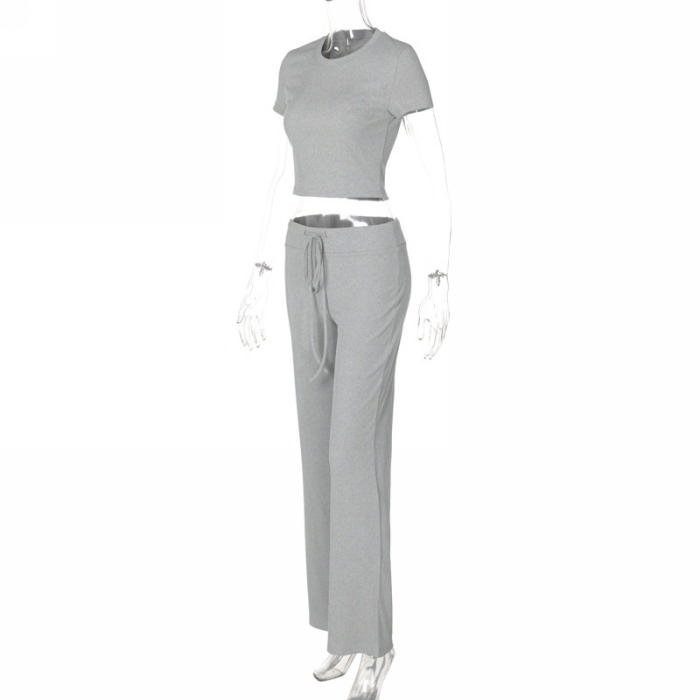 (Real Image)2024 Styles Women Summer Fashion Casual Short Sleeve Top with Tied Waist Slim Pants SetSKU: #CF88232-1