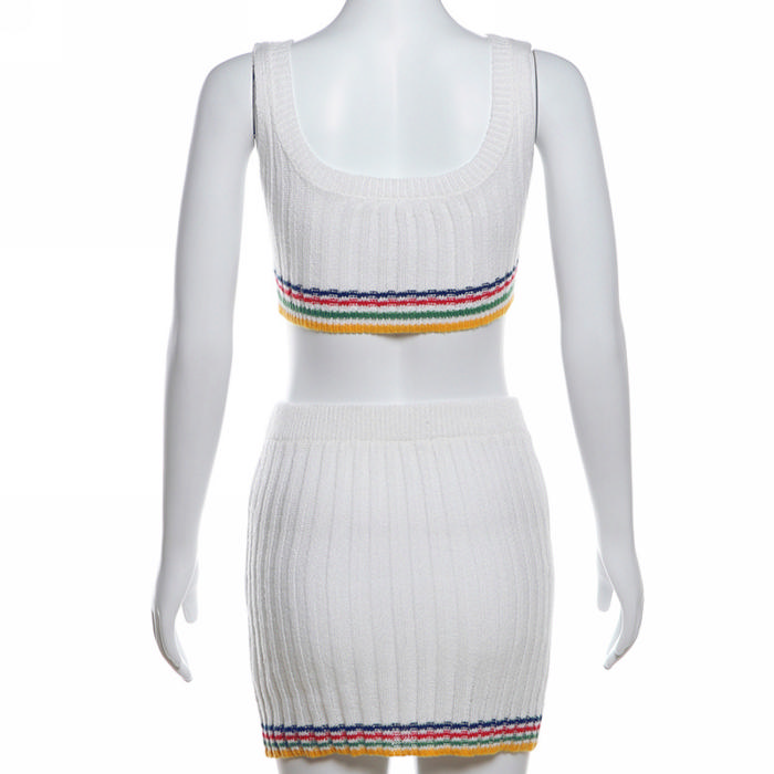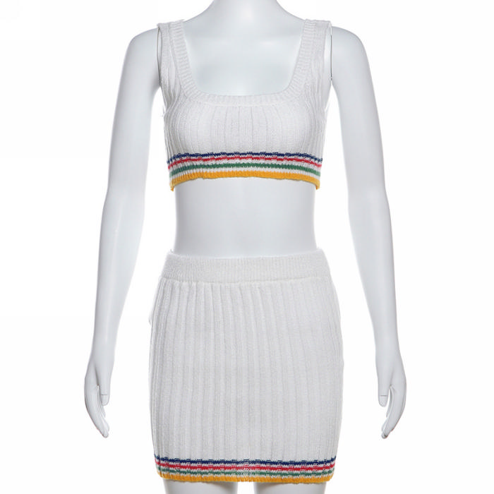 (Real Image)2024 Styles Women Summer Fashion Crop Top Vest High Waist Slimming Hip-Wrapped Knitted SetSKU: #CF77808-1