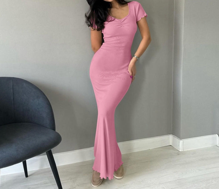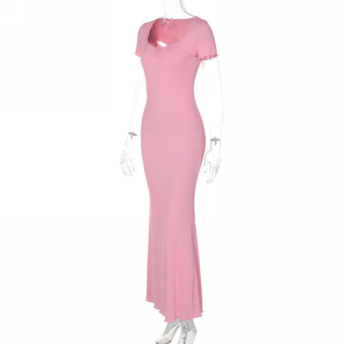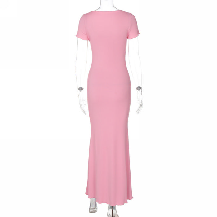 (Real Image)2024 Styles Women Summer Fashion Elegant U-Neck Short Sleeve Maxi DressSKU: #CF88222-1
